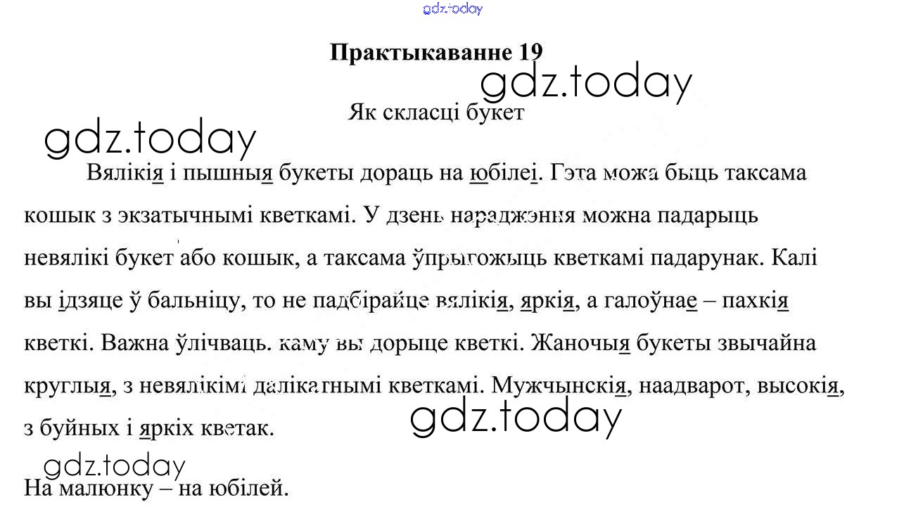 На страницах сайта gdz.today вы найдете учебный и вспомогательный материал, направленный на улучшения знаний школьной программы. ГДЗ - онлайн мир знаний Рашальнік да часткі 2. Практыкаванні 19 Учебнику по Белорусскому языку для 5 класса Валочка, Зелянко Национальный институт образования 2019