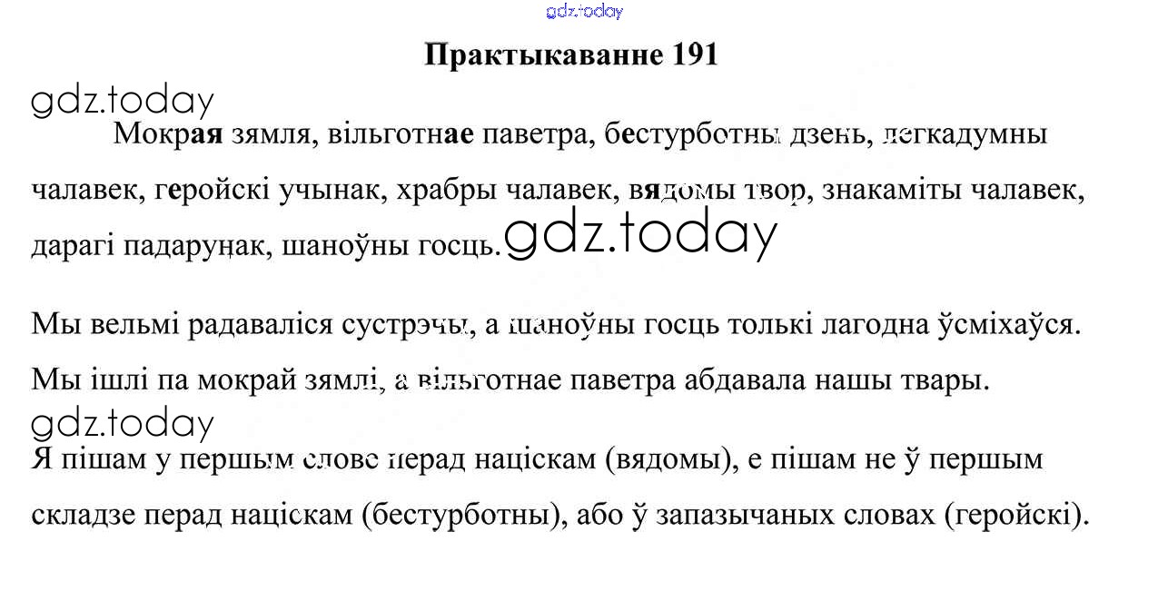 На страницах сайта gdz.today вы найдете учебный и вспомогательный материал, направленный на улучшения знаний школьной программы. ГДЗ - онлайн мир знаний Рашальнік да часткі 2. Практыкаванні 191 Учебнику по Белорусскому языку для 5 класса Валочка, Зелянко Национальный институт образования 2019