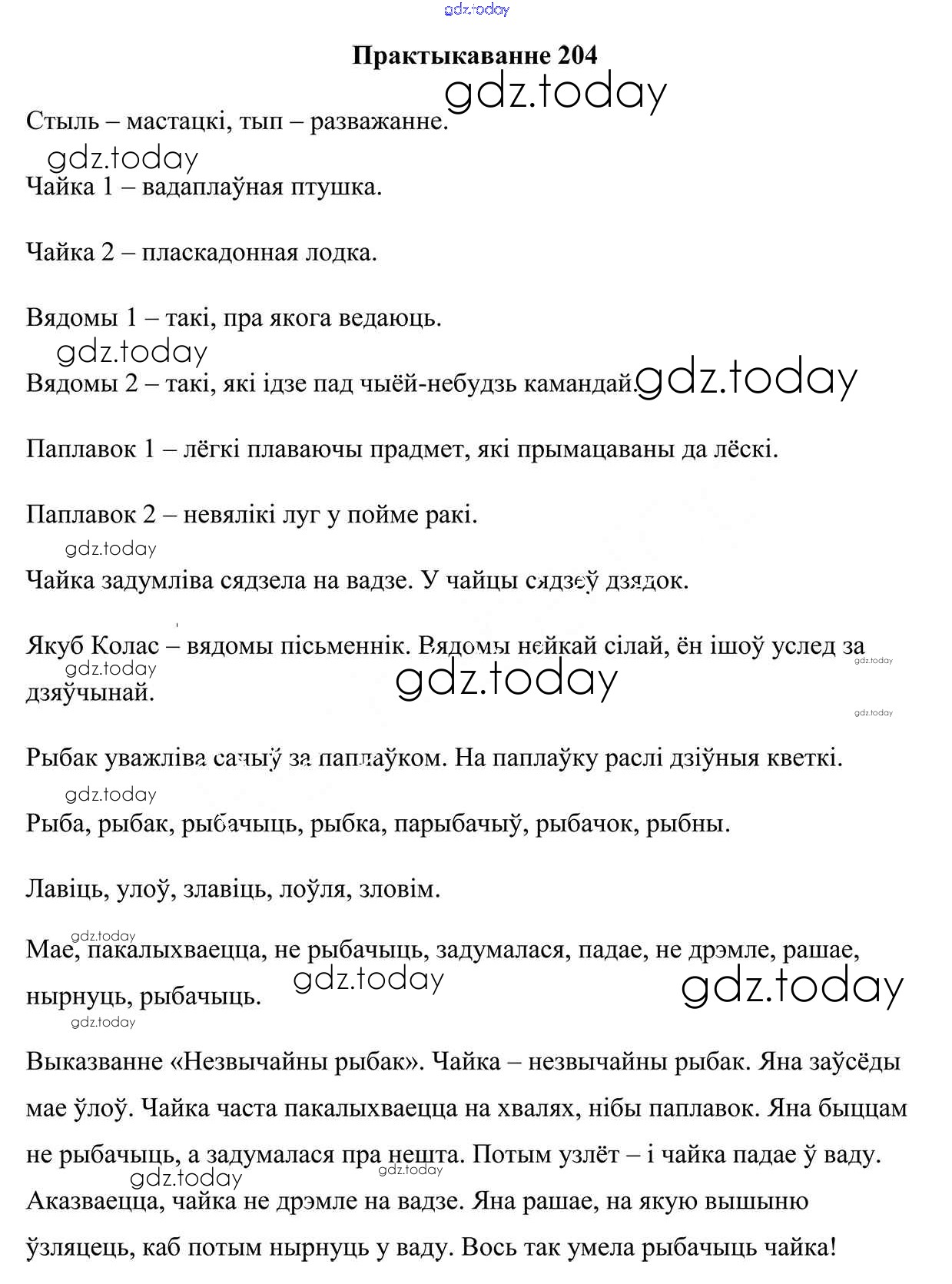 На страницах сайта gdz.today вы найдете учебный и вспомогательный материал, направленный на улучшения знаний школьной программы. ГДЗ - онлайн мир знаний Рашальнік да часткі 2. Практыкаванні 204 Учебнику по Белорусскому языку для 5 класса Валочка, Зелянко Национальный институт образования 2019