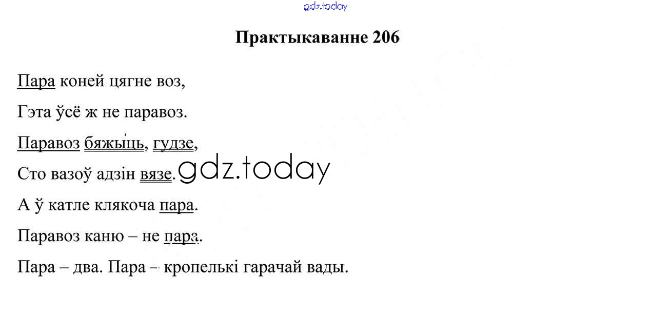 На страницах сайта gdz.today вы найдете учебный и вспомогательный материал, направленный на улучшения знаний школьной программы. ГДЗ - онлайн мир знаний Рашальнік да часткі 2. Практыкаванні 206 Учебнику по Белорусскому языку для 5 класса Валочка, Зелянко Национальный институт образования 2019