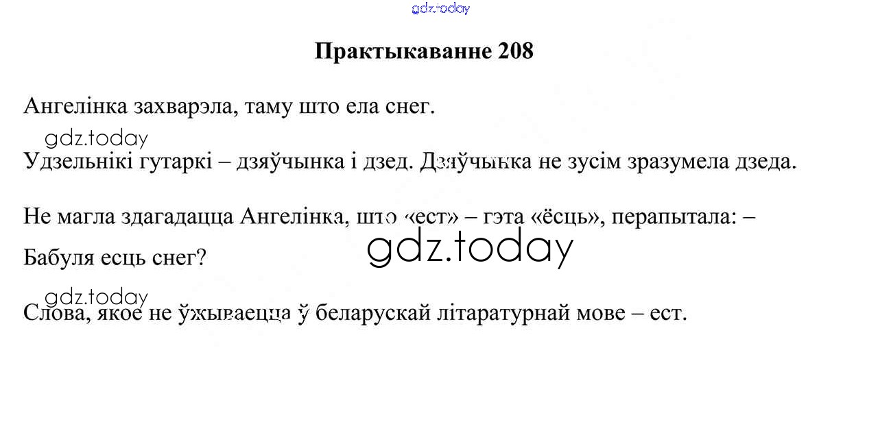 На страницах сайта gdz.today вы найдете учебный и вспомогательный материал, направленный на улучшения знаний школьной программы. ГДЗ - онлайн мир знаний Рашальнік да часткі 2. Практыкаванні 208 Учебнику по Белорусскому языку для 5 класса Валочка, Зелянко Национальный институт образования 2019