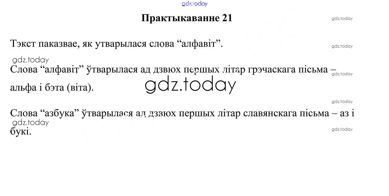 На страницах сайта gdz.today вы найдете учебный и вспомогательный материал, направленный на улучшения знаний школьной программы. ГДЗ - онлайн мир знаний Рашальнік да часткі 2. Практыкаванні 21 Учебнику по Белорусскому языку для 5 класса Валочка, Зелянко Национальный институт образования 2019