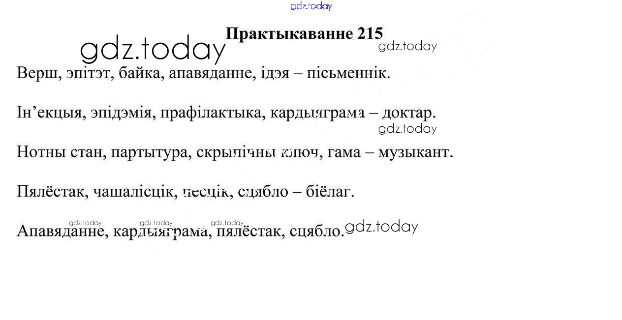 На страницах сайта gdz.today вы найдете учебный и вспомогательный материал, направленный на улучшения знаний школьной программы. ГДЗ - онлайн мир знаний Рашальнік да часткі 2. Практыкаванні 215 Учебнику по Белорусскому языку для 5 класса Валочка, Зелянко Национальный институт образования 2019