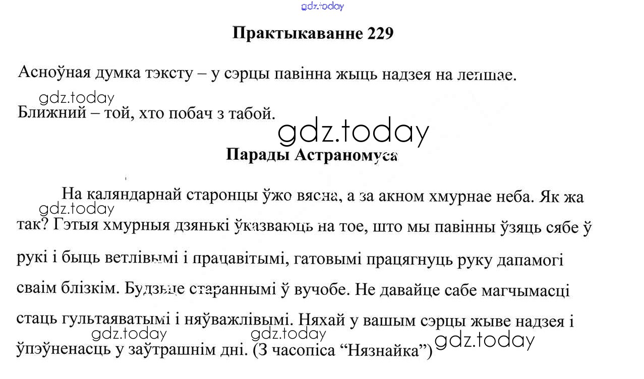 На страницах сайта gdz.today вы найдете учебный и вспомогательный материал, направленный на улучшения знаний школьной программы. ГДЗ - онлайн мир знаний Рашальнік да часткі 2. Практыкаванні 229 Учебнику по Белорусскому языку для 5 класса Валочка, Зелянко Национальный институт образования 2019