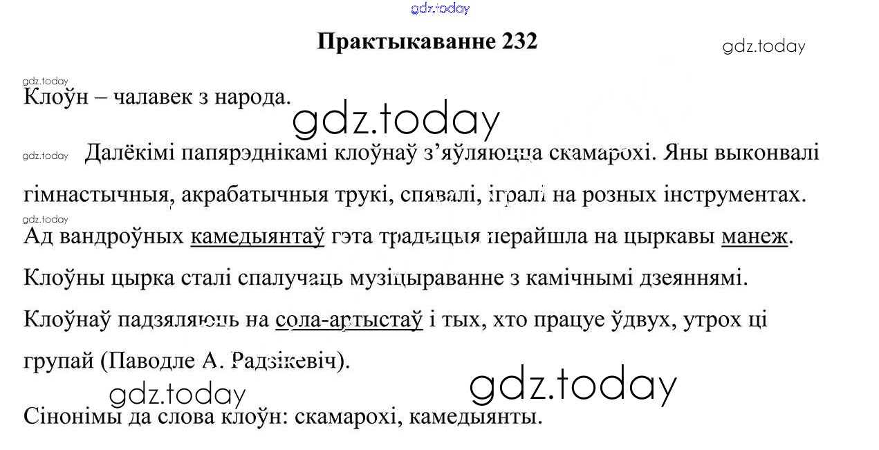 На страницах сайта gdz.today вы найдете учебный и вспомогательный материал, направленный на улучшения знаний школьной программы. ГДЗ - онлайн мир знаний Рашальнік да часткі 2. Практыкаванні 232 Учебнику по Белорусскому языку для 5 класса Валочка, Зелянко Национальный институт образования 2019
