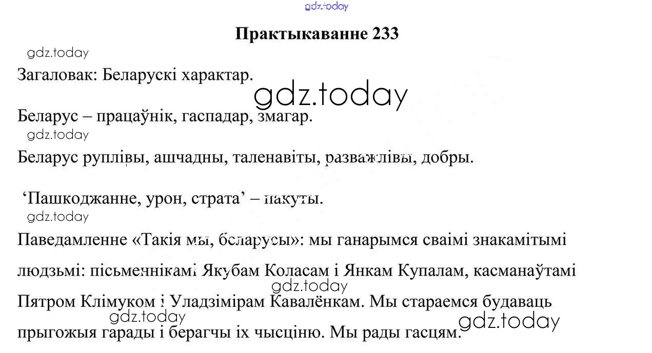 На страницах сайта gdz.today вы найдете учебный и вспомогательный материал, направленный на улучшения знаний школьной программы. ГДЗ - онлайн мир знаний Рашальнік да часткі 2. Практыкаванні 233 Учебнику по Белорусскому языку для 5 класса Валочка, Зелянко Национальный институт образования 2019