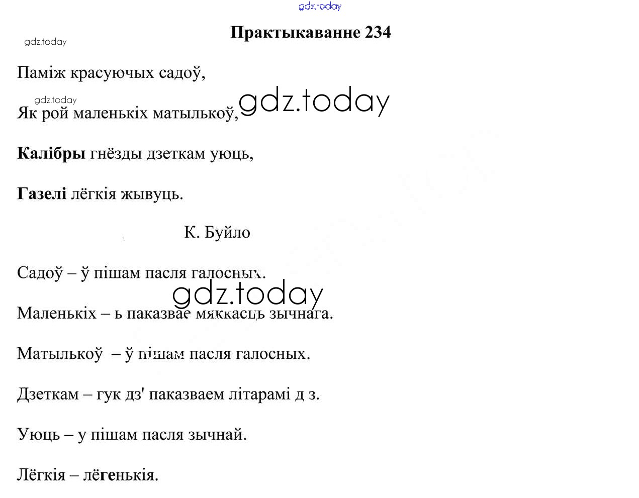 На страницах сайта gdz.today вы найдете учебный и вспомогательный материал, направленный на улучшения знаний школьной программы. ГДЗ - онлайн мир знаний Рашальнік да часткі 2. Практыкаванні 234 Учебнику по Белорусскому языку для 5 класса Валочка, Зелянко Национальный институт образования 2019