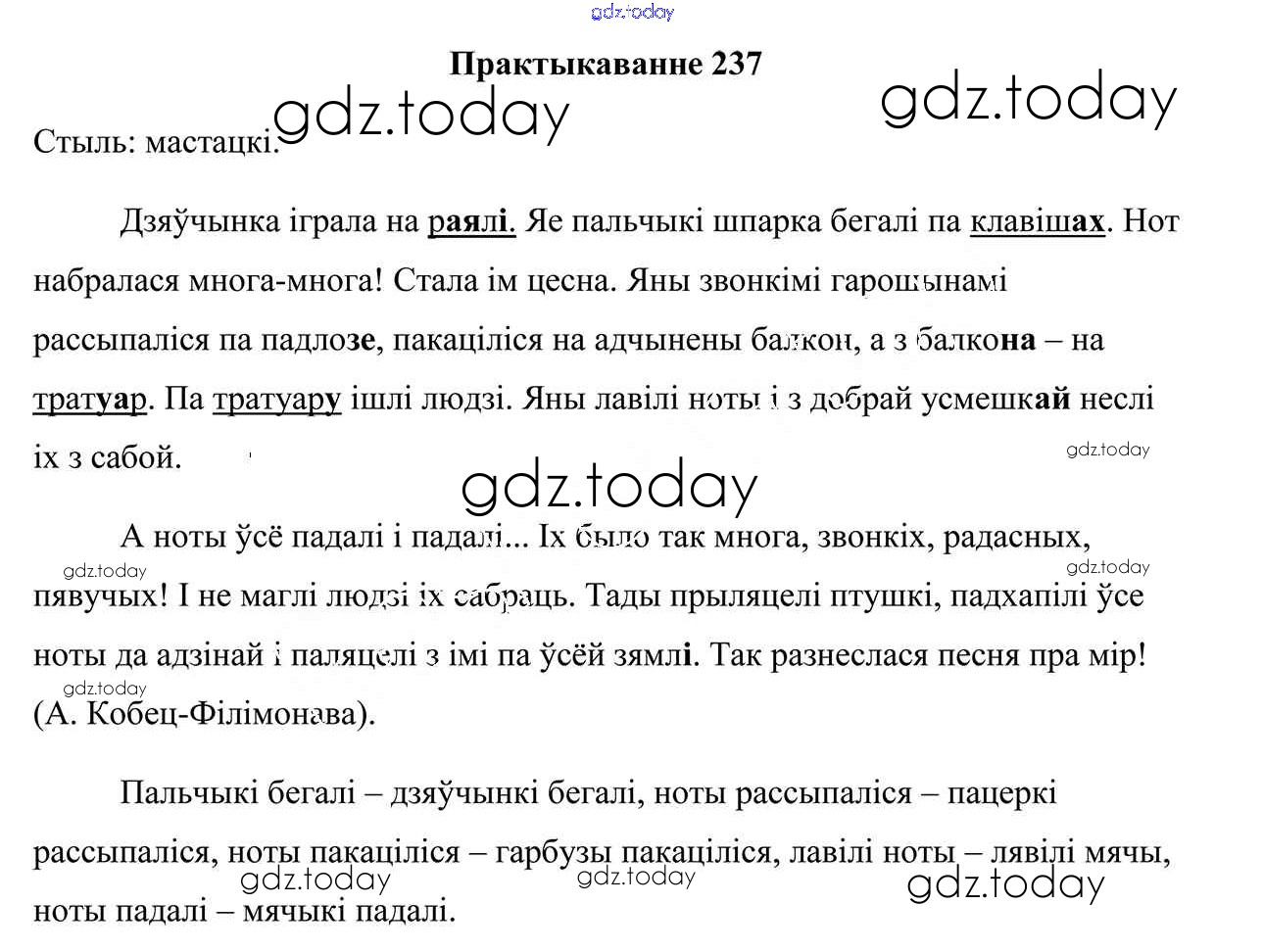 На страницах сайта gdz.today вы найдете учебный и вспомогательный материал, направленный на улучшения знаний школьной программы. ГДЗ - онлайн мир знаний Рашальнік да часткі 2. Практыкаванні 237 Учебнику по Белорусскому языку для 5 класса Валочка, Зелянко Национальный институт образования 2019