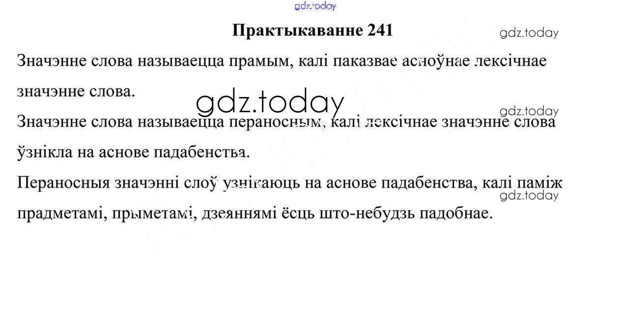 На страницах сайта gdz.today вы найдете учебный и вспомогательный материал, направленный на улучшения знаний школьной программы. ГДЗ - онлайн мир знаний Рашальнік да часткі 2. Практыкаванні 241 Учебнику по Белорусскому языку для 5 класса Валочка, Зелянко Национальный институт образования 2019