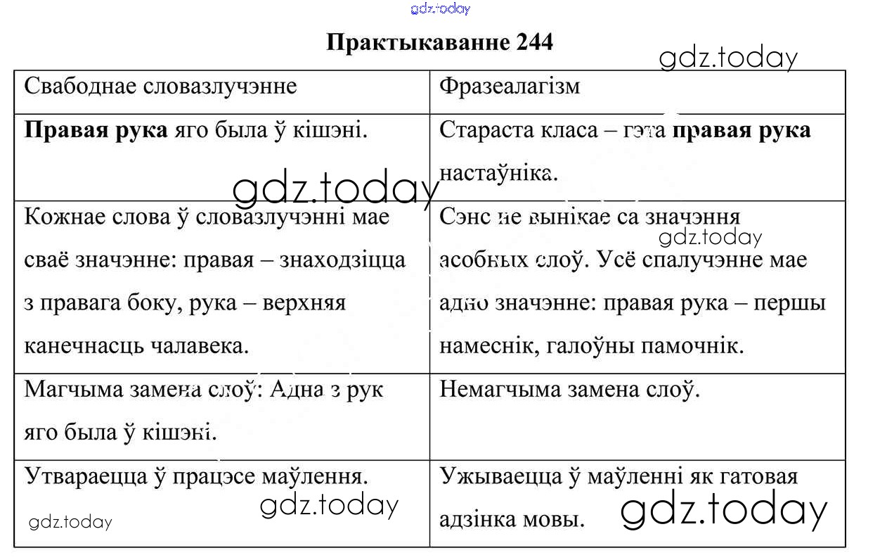 На страницах сайта gdz.today вы найдете учебный и вспомогательный материал, направленный на улучшения знаний школьной программы. ГДЗ - онлайн мир знаний Рашальнік да часткі 2. Практыкаванні 244 Учебнику по Белорусскому языку для 5 класса Валочка, Зелянко Национальный институт образования 2019
