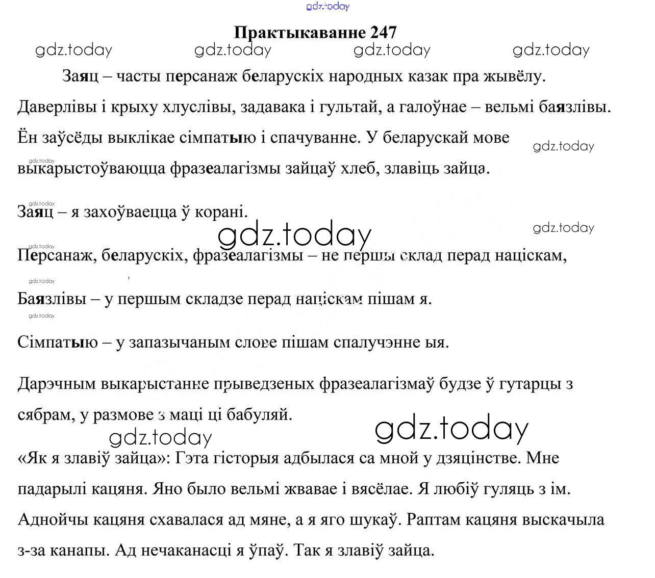 На страницах сайта gdz.today вы найдете учебный и вспомогательный материал, направленный на улучшения знаний школьной программы. ГДЗ - онлайн мир знаний Рашальнік да часткі 2. Практыкаванні 247 Учебнику по Белорусскому языку для 5 класса Валочка, Зелянко Национальный институт образования 2019
