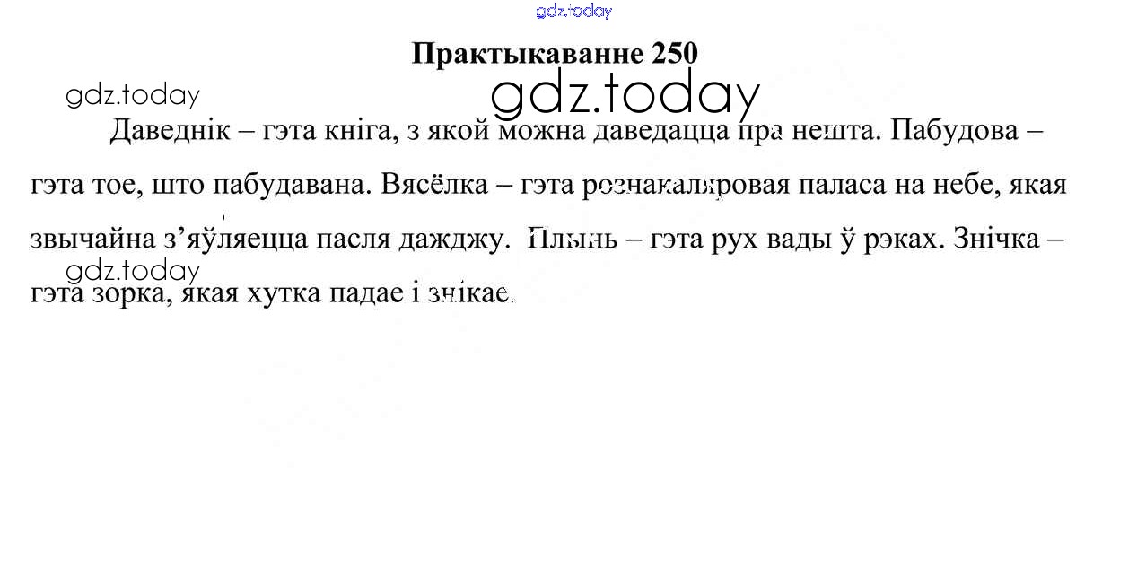 На страницах сайта gdz.today вы найдете учебный и вспомогательный материал, направленный на улучшения знаний школьной программы. ГДЗ - онлайн мир знаний Рашальнік да часткі 2. Практыкаванні 250 Учебнику по Белорусскому языку для 5 класса Валочка, Зелянко Национальный институт образования 2019