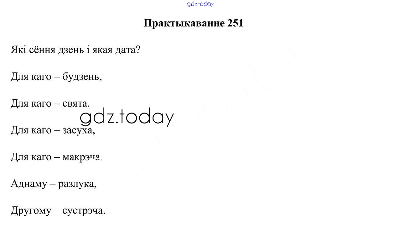 На страницах сайта gdz.today вы найдете учебный и вспомогательный материал, направленный на улучшения знаний школьной программы. ГДЗ - онлайн мир знаний Рашальнік да часткі 2. Практыкаванні 251 Учебнику по Белорусскому языку для 5 класса Валочка, Зелянко Национальный институт образования 2019