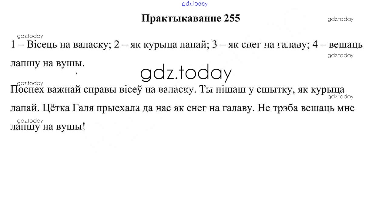На страницах сайта gdz.today вы найдете учебный и вспомогательный материал, направленный на улучшения знаний школьной программы. ГДЗ - онлайн мир знаний Рашальнік да часткі 2. Практыкаванні 255 Учебнику по Белорусскому языку для 5 класса Валочка, Зелянко Национальный институт образования 2019