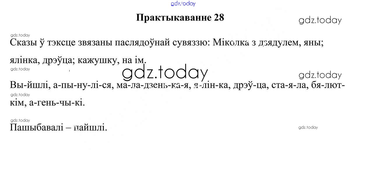 На страницах сайта gdz.today вы найдете учебный и вспомогательный материал, направленный на улучшения знаний школьной программы. ГДЗ - онлайн мир знаний Рашальнік да часткі 2. Практыкаванні 28 Учебнику по Белорусскому языку для 5 класса Валочка, Зелянко Национальный институт образования 2019