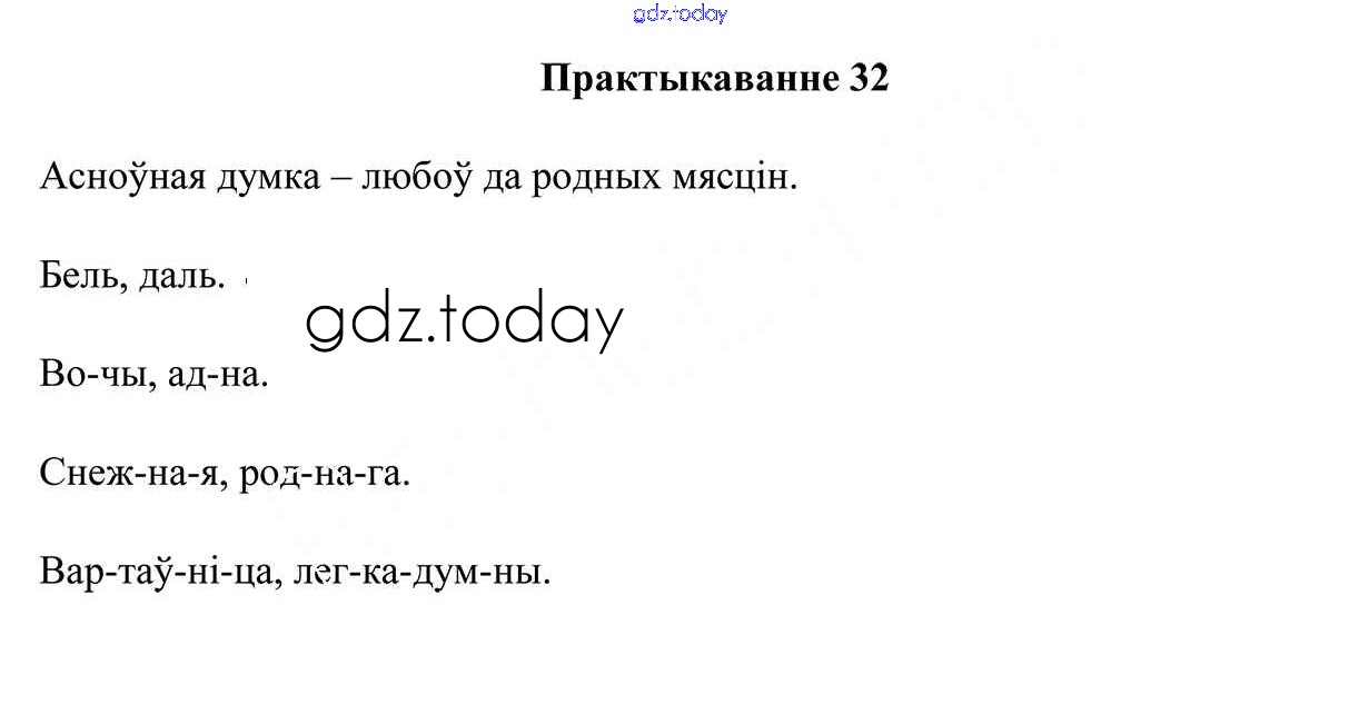 На страницах сайта gdz.today вы найдете учебный и вспомогательный материал, направленный на улучшения знаний школьной программы. ГДЗ - онлайн мир знаний Рашальнік да часткі 2. Практыкаванні 32 Учебнику по Белорусскому языку для 5 класса Валочка, Зелянко Национальный институт образования 2019