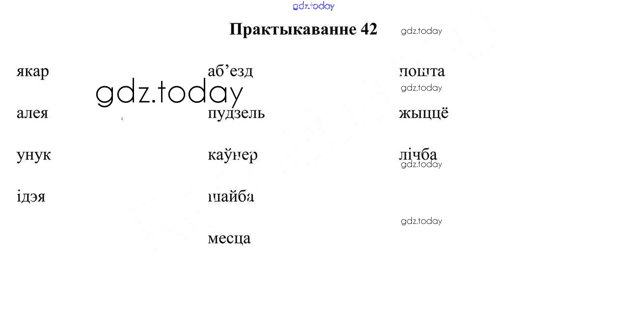 На страницах сайта gdz.today вы найдете учебный и вспомогательный материал, направленный на улучшения знаний школьной программы. ГДЗ - онлайн мир знаний Рашальнік да часткі 2. Практыкаванні 42 Учебнику по Белорусскому языку для 5 класса Валочка, Зелянко Национальный институт образования 2019