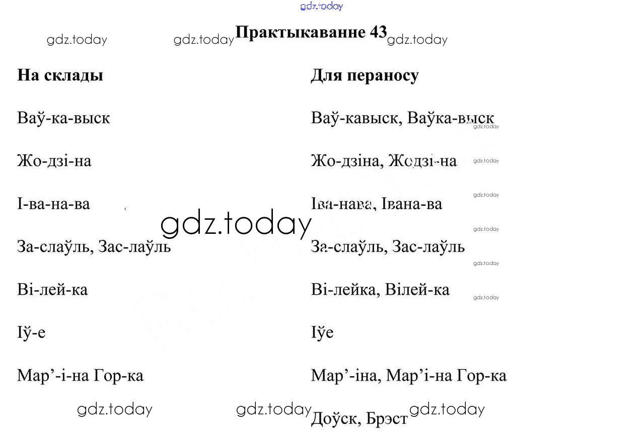На страницах сайта gdz.today вы найдете учебный и вспомогательный материал, направленный на улучшения знаний школьной программы. ГДЗ - онлайн мир знаний Рашальнік да часткі 2. Практыкаванні 43 Учебнику по Белорусскому языку для 5 класса Валочка, Зелянко Национальный институт образования 2019