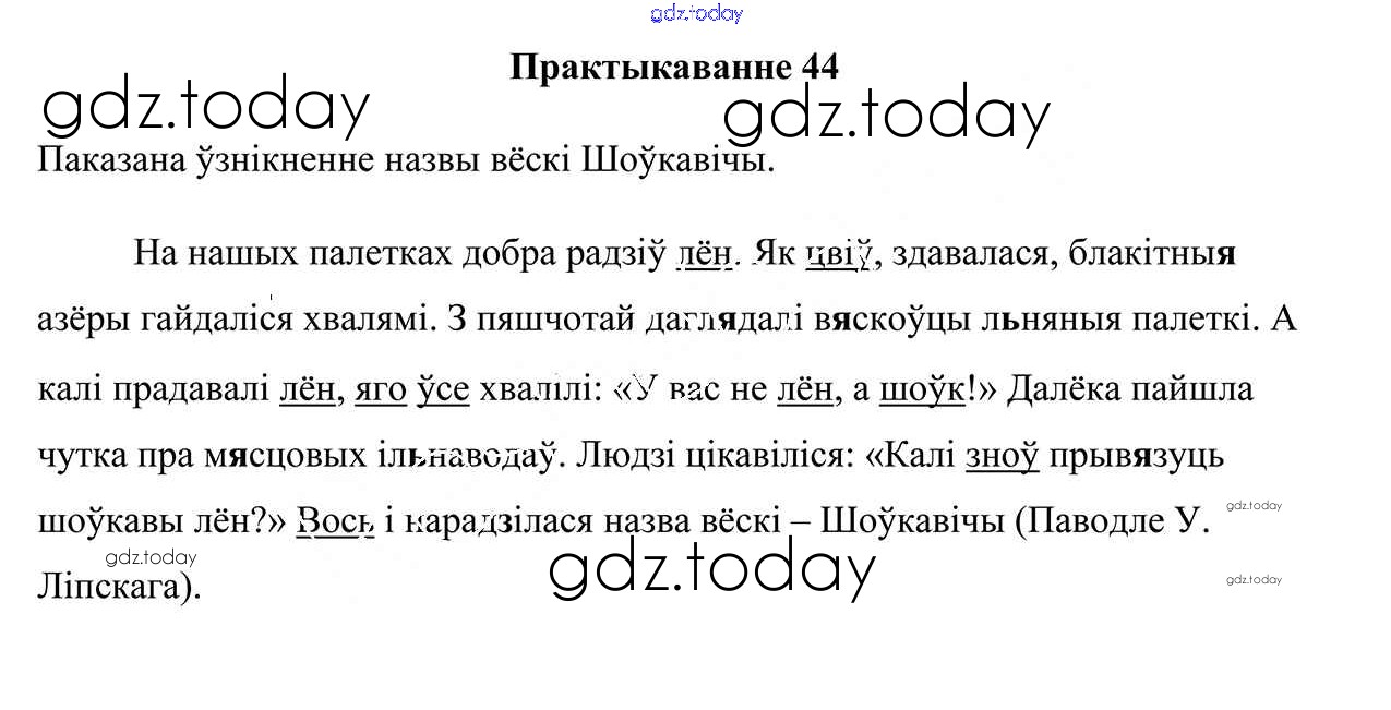На страницах сайта gdz.today вы найдете учебный и вспомогательный материал, направленный на улучшения знаний школьной программы. ГДЗ - онлайн мир знаний Рашальнік да часткі 2. Практыкаванні 44 Учебнику по Белорусскому языку для 5 класса Валочка, Зелянко Национальный институт образования 2019