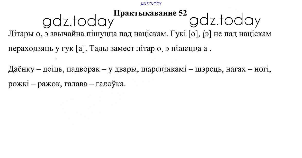 На страницах сайта gdz.today вы найдете учебный и вспомогательный материал, направленный на улучшения знаний школьной программы. ГДЗ - онлайн мир знаний Рашальнік да часткі 2. Практыкаванні 52 Учебнику по Белорусскому языку для 5 класса Валочка, Зелянко Национальный институт образования 2019