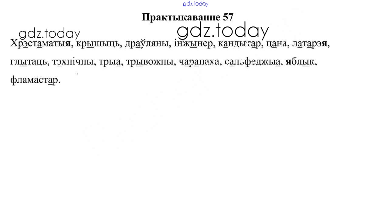 На страницах сайта gdz.today вы найдете учебный и вспомогательный материал, направленный на улучшения знаний школьной программы. ГДЗ - онлайн мир знаний Рашальнік да часткі 2. Практыкаванні 57 Учебнику по Белорусскому языку для 5 класса Валочка, Зелянко Национальный институт образования 2019