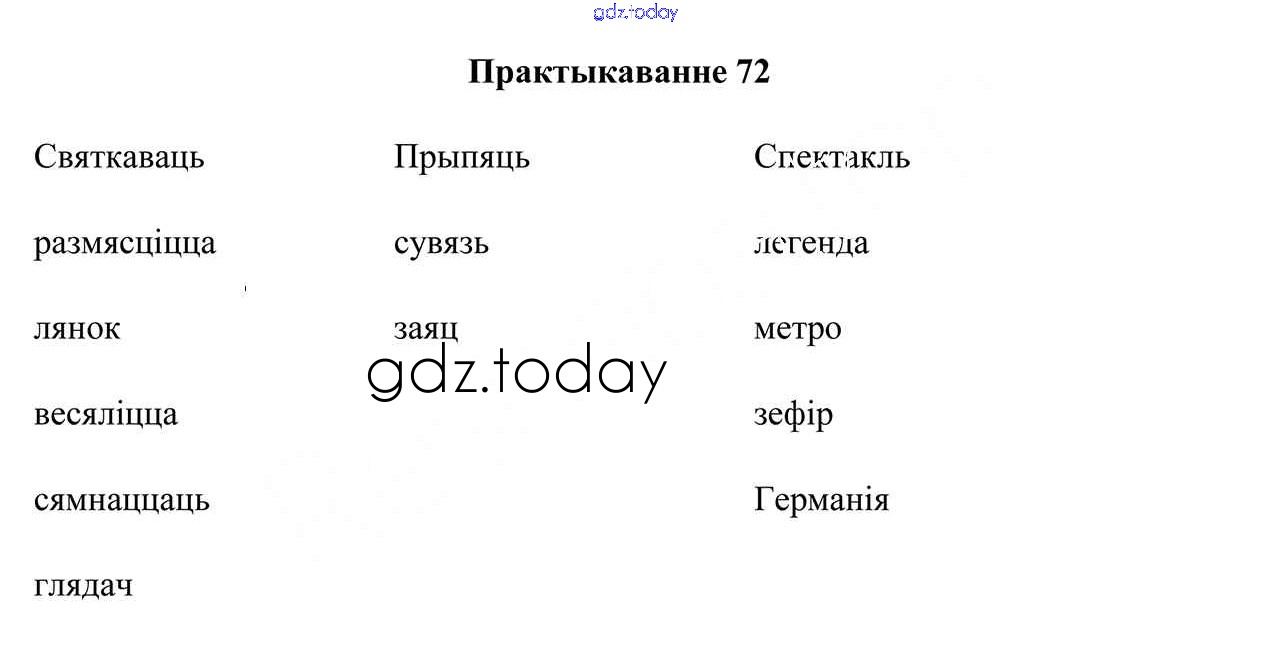 На страницах сайта gdz.today вы найдете учебный и вспомогательный материал, направленный на улучшения знаний школьной программы. ГДЗ - онлайн мир знаний Рашальнік да часткі 2. Практыкаванні 72 Учебнику по Белорусскому языку для 5 класса Валочка, Зелянко Национальный институт образования 2019
