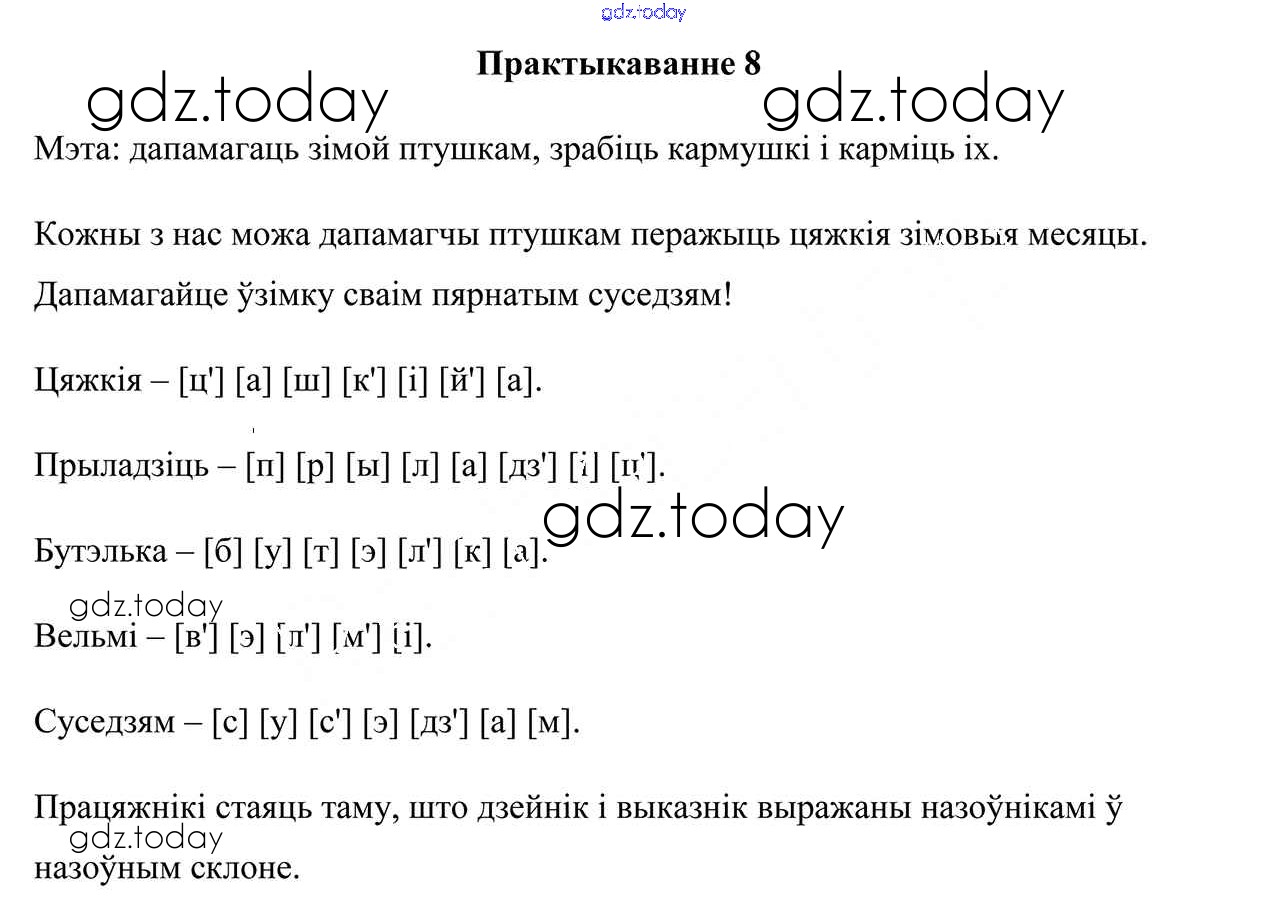 На страницах сайта gdz.today вы найдете учебный и вспомогательный материал, направленный на улучшения знаний школьной программы. ГДЗ - онлайн мир знаний Рашальнік да часткі 2. Практыкаванні 8 Учебнику по Белорусскому языку для 5 класса Валочка, Зелянко Национальный институт образования 2019