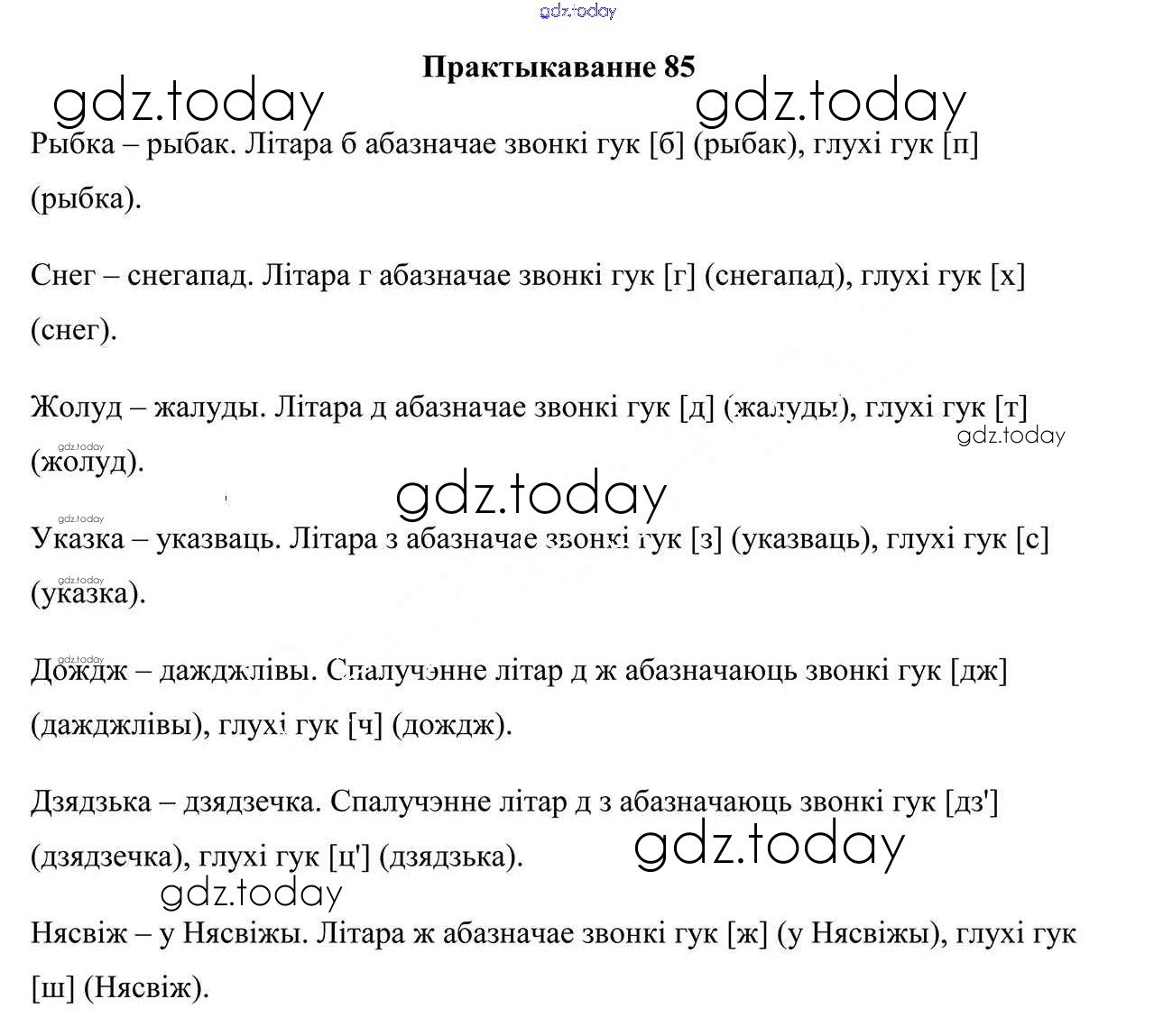 На страницах сайта gdz.today вы найдете учебный и вспомогательный материал, направленный на улучшения знаний школьной программы. ГДЗ - онлайн мир знаний Рашальнік да часткі 2. Практыкаванні 85 Учебнику по Белорусскому языку для 5 класса Валочка, Зелянко Национальный институт образования 2019