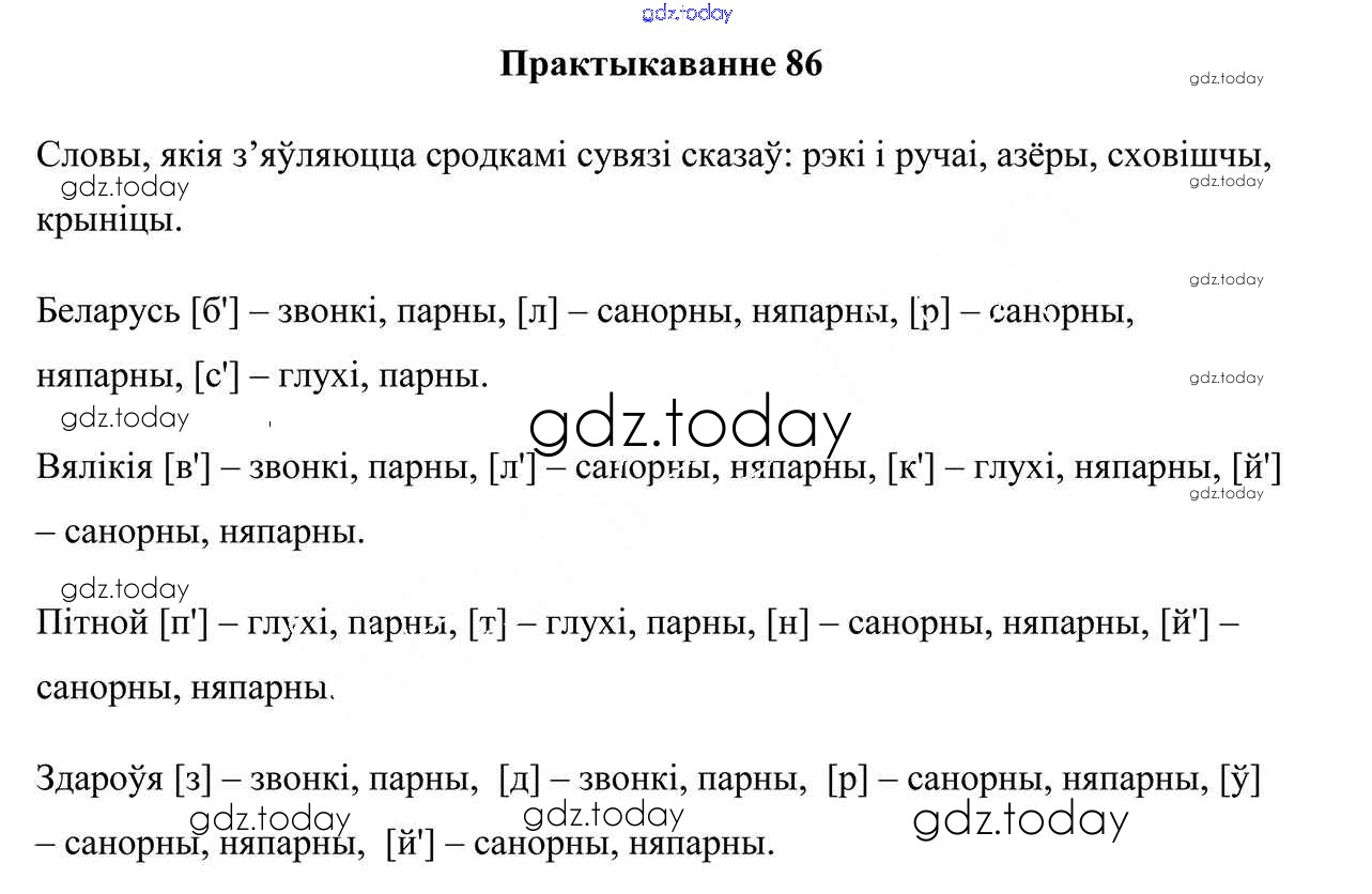 На страницах сайта gdz.today вы найдете учебный и вспомогательный материал, направленный на улучшения знаний школьной программы. ГДЗ - онлайн мир знаний Рашальнік да часткі 2. Практыкаванні 86 Учебнику по Белорусскому языку для 5 класса Валочка, Зелянко Национальный институт образования 2019