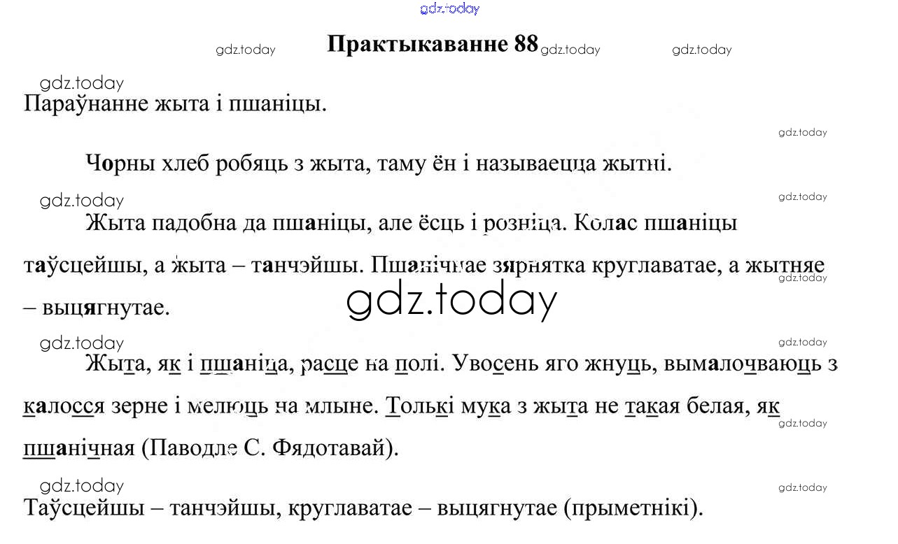 На страницах сайта gdz.today вы найдете учебный и вспомогательный материал, направленный на улучшения знаний школьной программы. ГДЗ - онлайн мир знаний Рашальнік да часткі 2. Практыкаванні 88 Учебнику по Белорусскому языку для 5 класса Валочка, Зелянко Национальный институт образования 2019