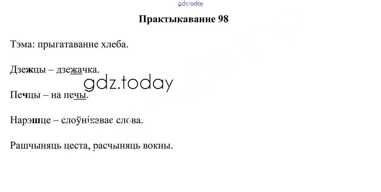 На страницах сайта gdz.today вы найдете учебный и вспомогательный материал, направленный на улучшения знаний школьной программы. ГДЗ - онлайн мир знаний Рашальнік да часткі 2. Практыкаванні 98 Учебнику по Белорусскому языку для 5 класса Валочка, Зелянко Национальный институт образования 2019
