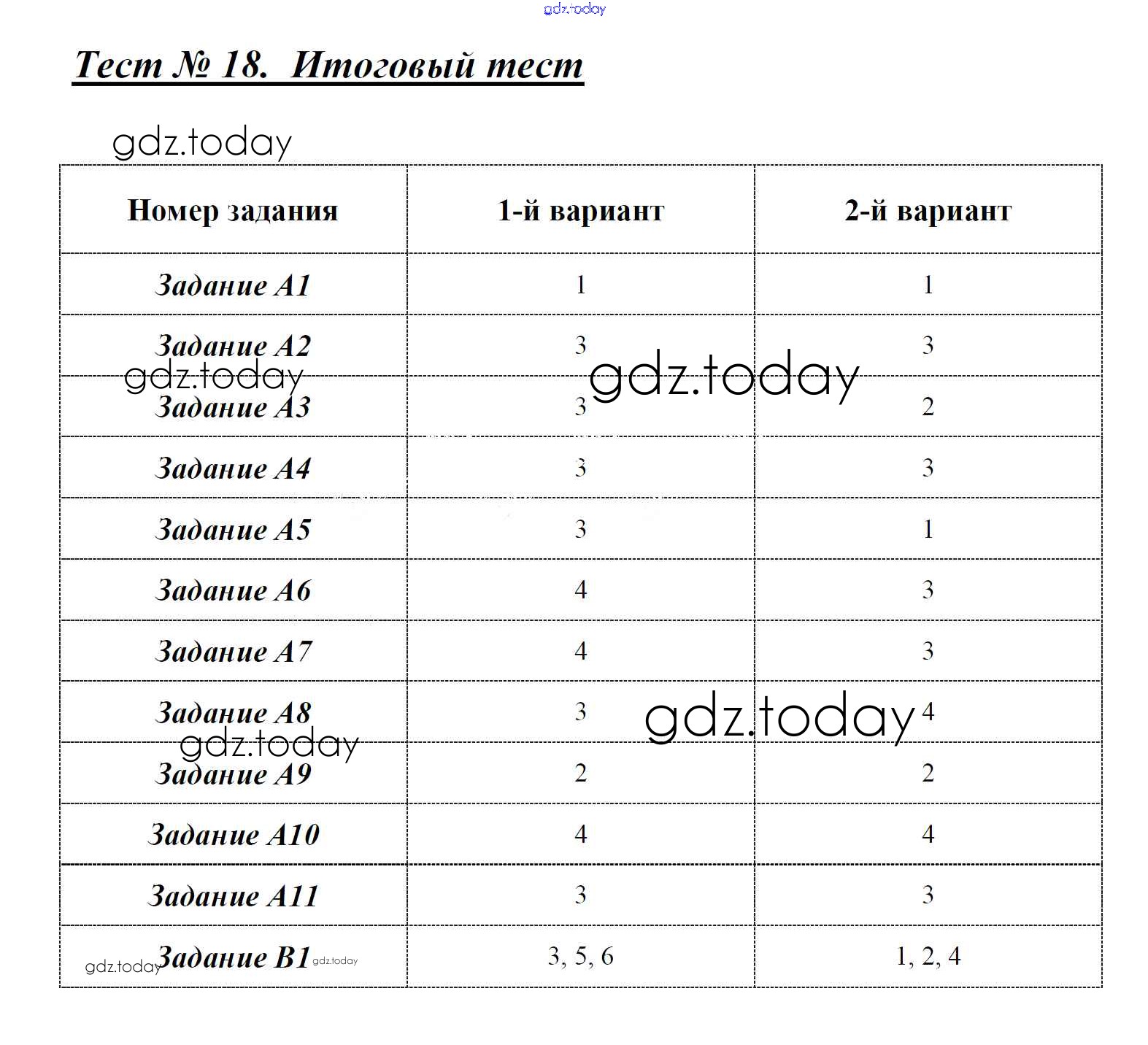На страницах сайта gdz.today вы найдете учебный и вспомогательный материал, направленный на улучшения знаний школьной программы. ГДЗ - онлайн мир знаний Решение к тестам Тест №18. Итоговый Контрольно-измерительным материалам (КИМ) по Биологии для 5 класса Богданов ВАКО 2017