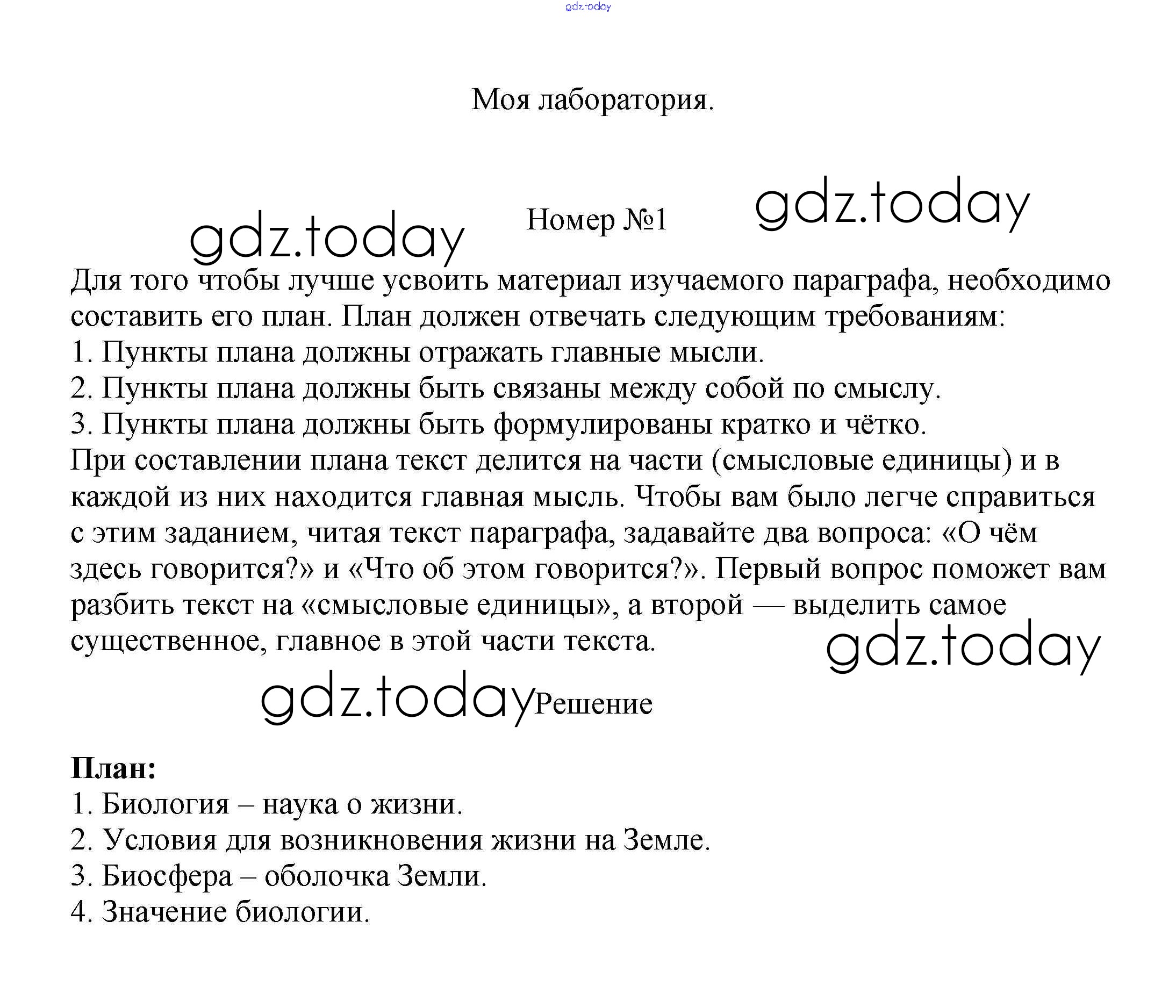 На страницах сайта gdz.today вы найдете учебный и вспомогательный материал, направленный на улучшения знаний школьной программы. ГДЗ - онлайн мир знаний Моя лаборатория Решение к §1 1 Учебнику по Биологии для 5-6 класса Пасечник, Суматохин Просвещение Линия жизни 2020