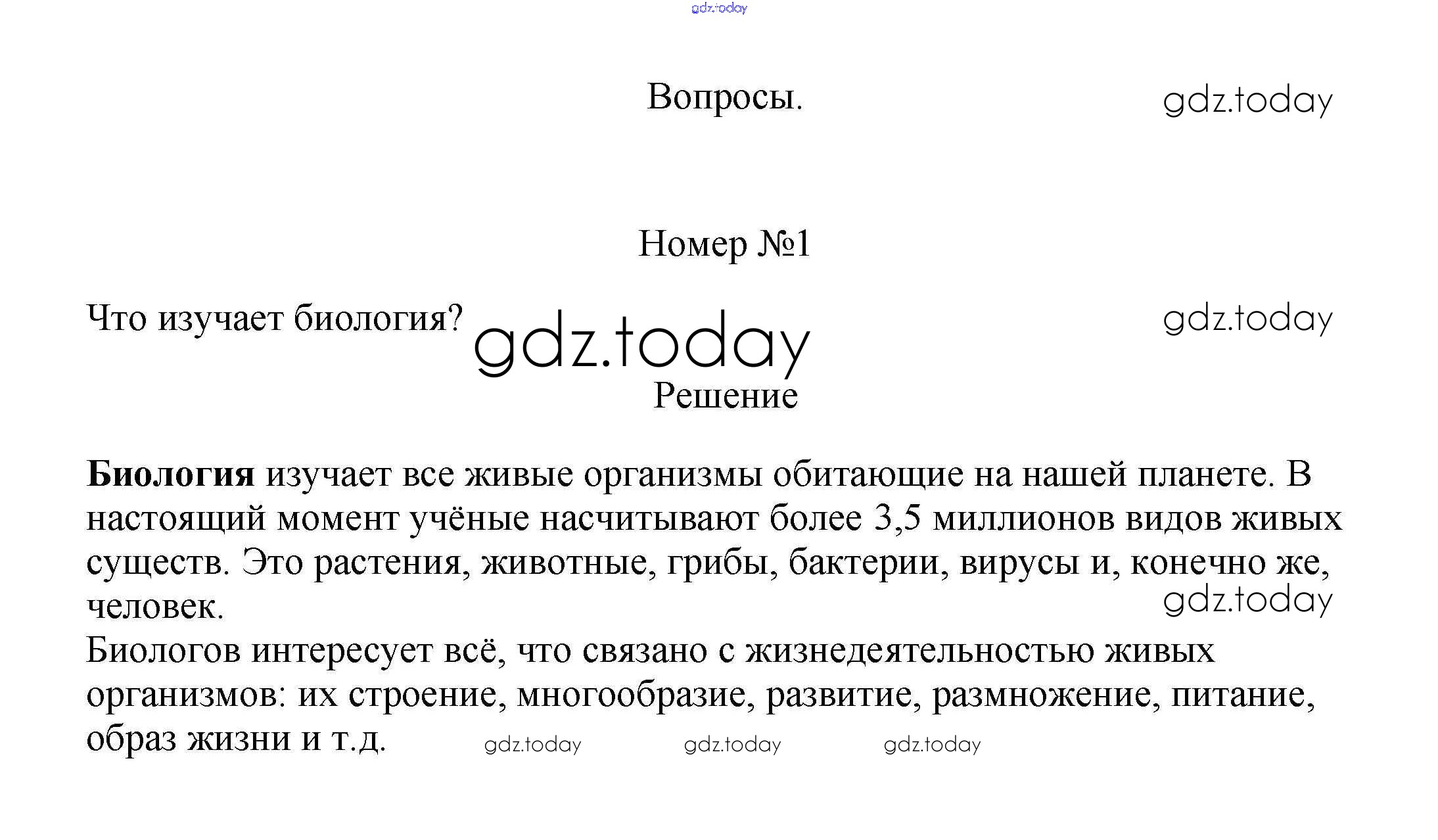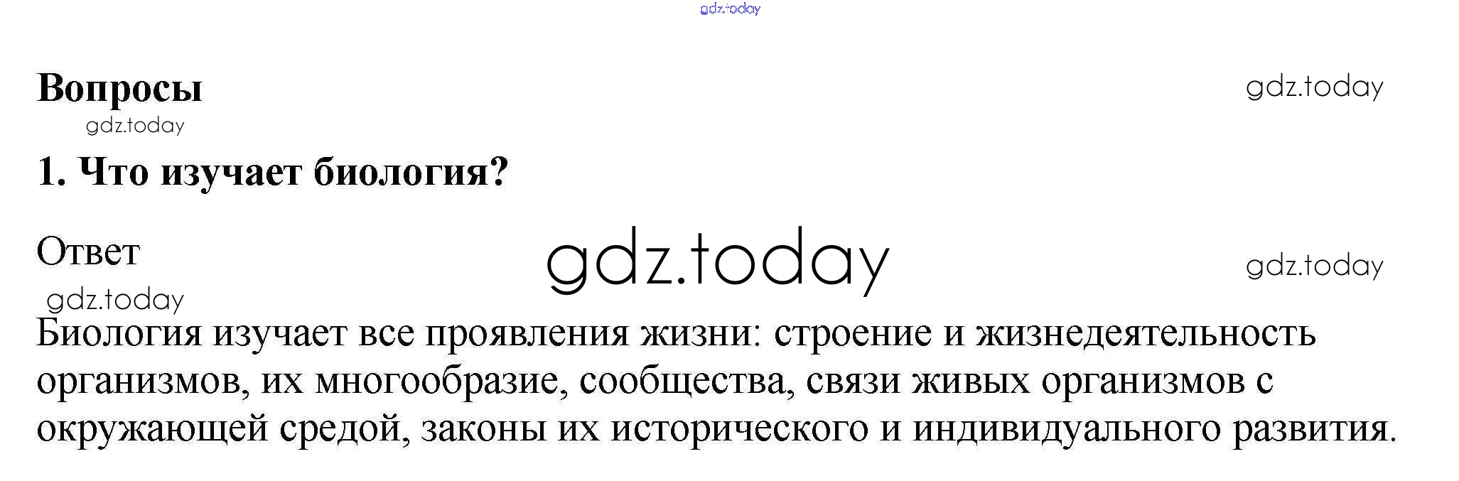 На страницах сайта gdz.today вы найдете учебный и вспомогательный материал, направленный на улучшения знаний школьной программы. ГДЗ - онлайн мир знаний Вопросы Решение к §1 1 Учебнику по Биологии для 5-6 класса Пасечник, Суматохин Просвещение Линия жизни 2020