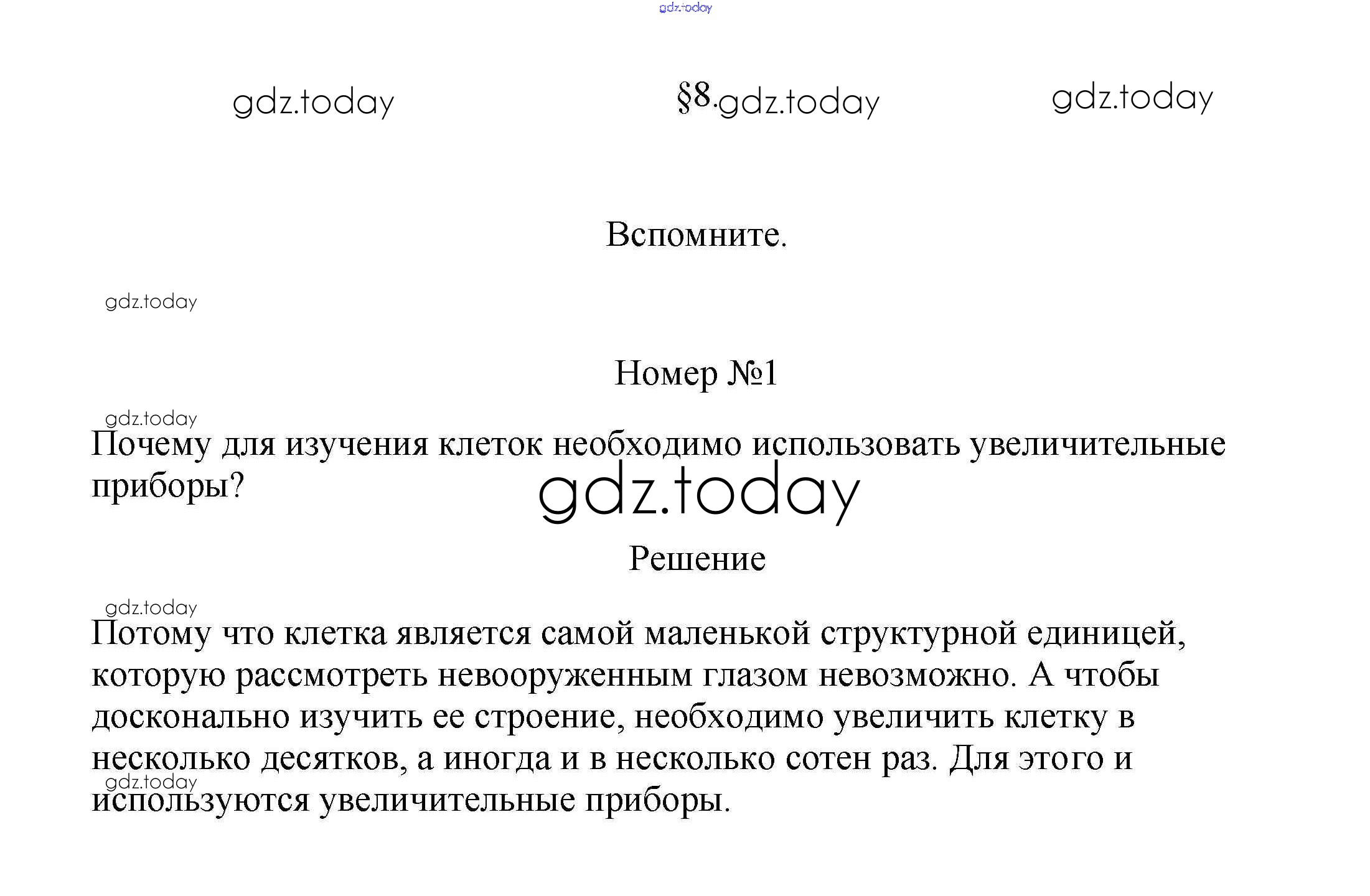 Ответы к Вспомните Решение к §8 1 Учебнику по Биологии для 5-6 класса Пасечник, Суматохин Просвещение Линия жизни 2020
