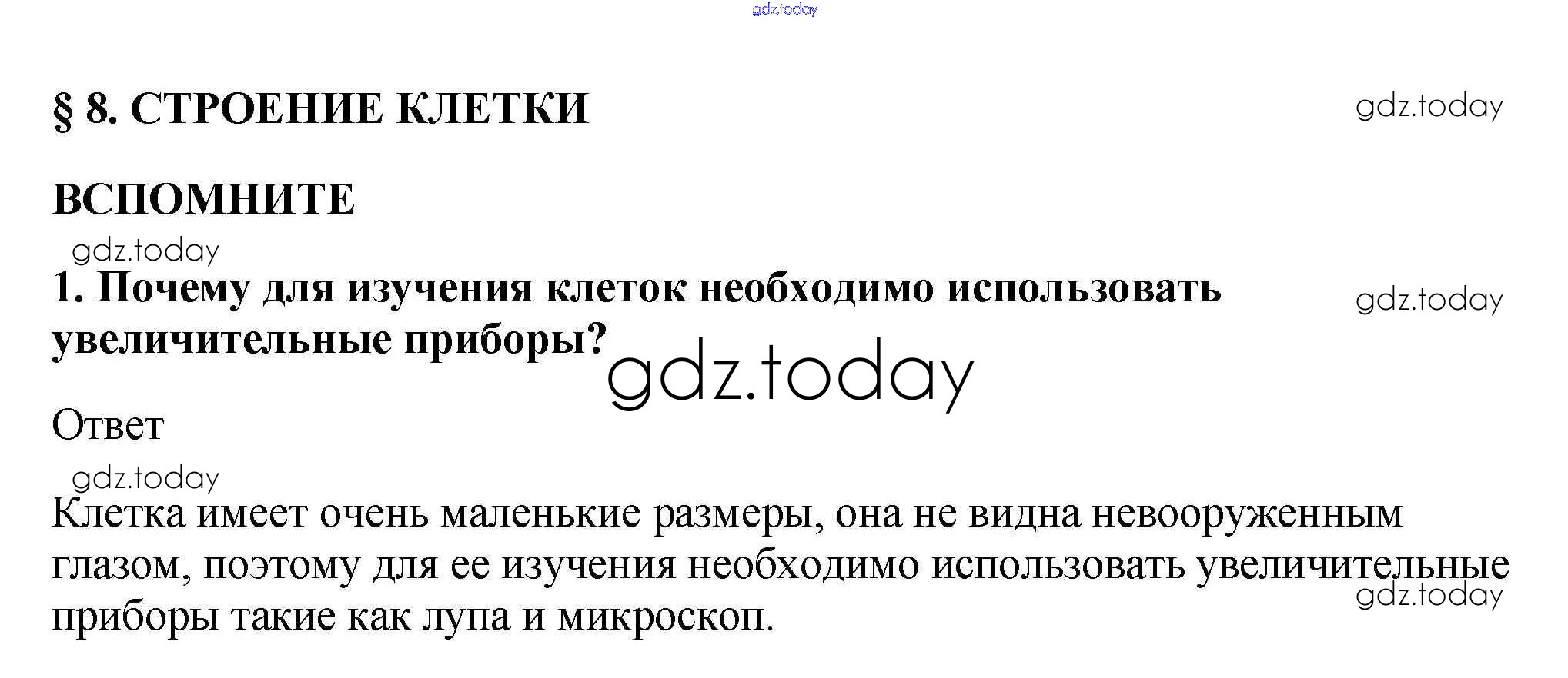 На страницах сайта gdz.today вы найдете учебный и вспомогательный материал, направленный на улучшения знаний школьной программы. ГДЗ - онлайн мир знаний Вспомните Решение к §8 1 Учебнику по Биологии для 5-6 класса Пасечник, Суматохин Просвещение Линия жизни 2020