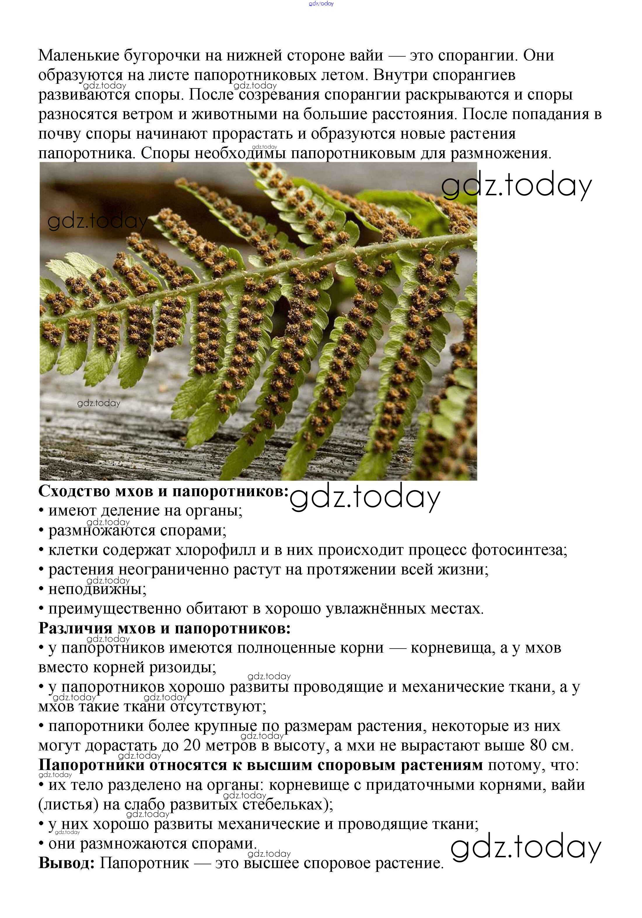 Ответы к Строение папоротника Решение к §18 1 Учебнику по Биологии для 5-6 класса Пасечник, Суматохин Просвещение Линия жизни 2020