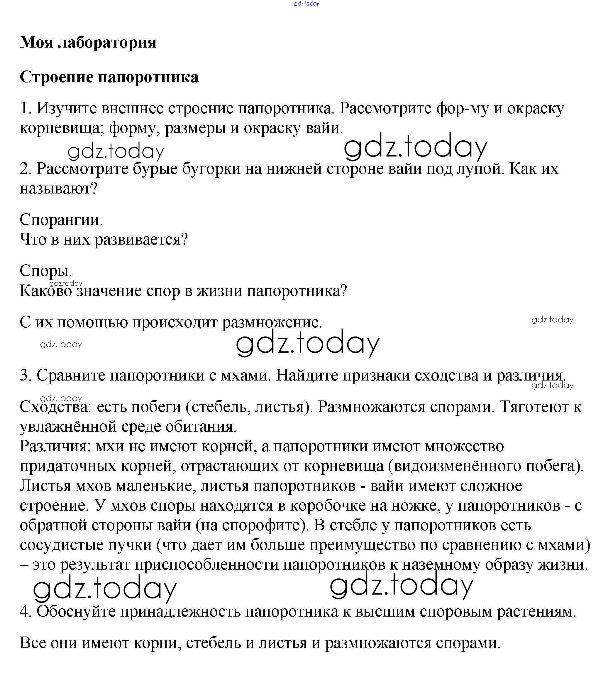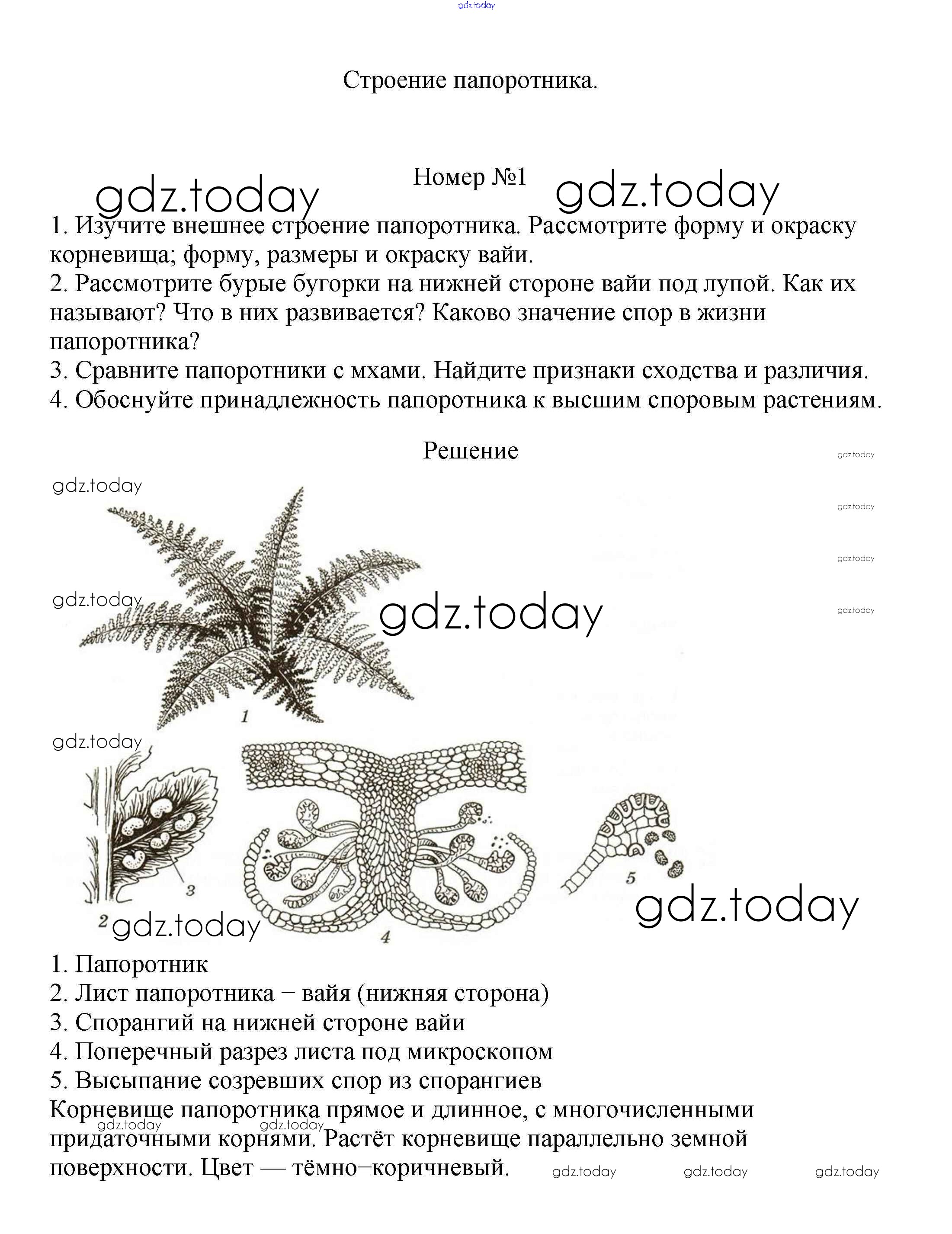 На страницах сайта gdz.today вы найдете учебный и вспомогательный материал, направленный на улучшения знаний школьной программы. ГДЗ - онлайн мир знаний Строение папоротника Решение к §18 1 Учебнику по Биологии для 5-6 класса Пасечник, Суматохин Просвещение Линия жизни 2020
