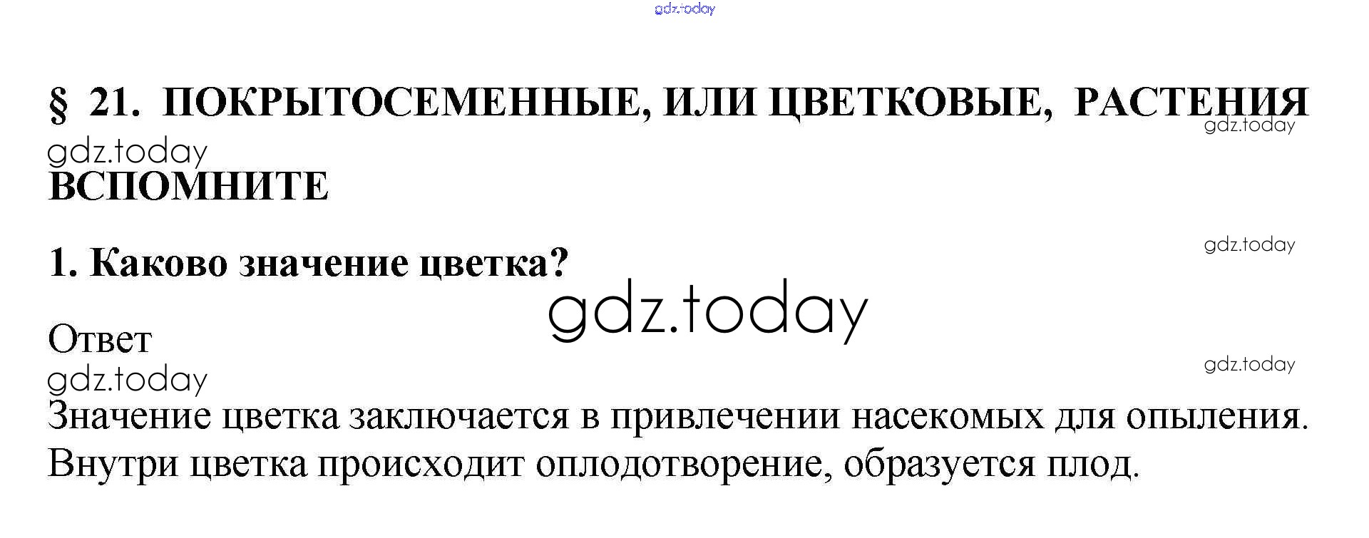 На страницах сайта gdz.today вы найдете учебный и вспомогательный материал, направленный на улучшения знаний школьной программы. ГДЗ - онлайн мир знаний Вспомните Решение к §21 1 Учебнику по Биологии для 5-6 класса Пасечник, Суматохин Просвещение Линия жизни 2020
