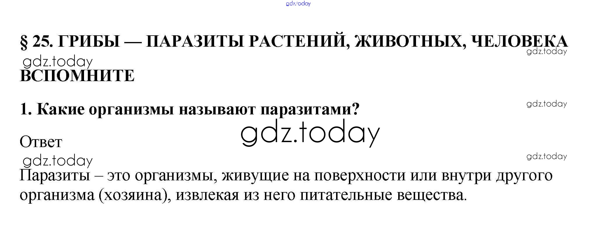 На страницах сайта gdz.today вы найдете учебный и вспомогательный материал, направленный на улучшения знаний школьной программы. ГДЗ - онлайн мир знаний Вспомните Решение к §25 1 Учебнику по Биологии для 5-6 класса Пасечник, Суматохин Просвещение Линия жизни 2020
