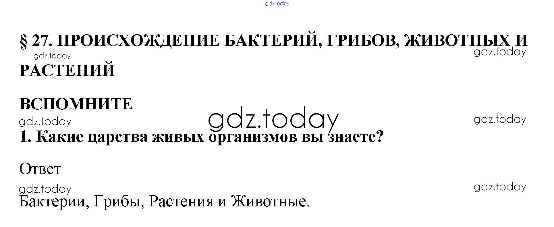 На страницах сайта gdz.today вы найдете учебный и вспомогательный материал, направленный на улучшения знаний школьной программы. ГДЗ - онлайн мир знаний Вспомните Решение к §27 1 Учебнику по Биологии для 5-6 класса Пасечник, Суматохин Просвещение Линия жизни 2020