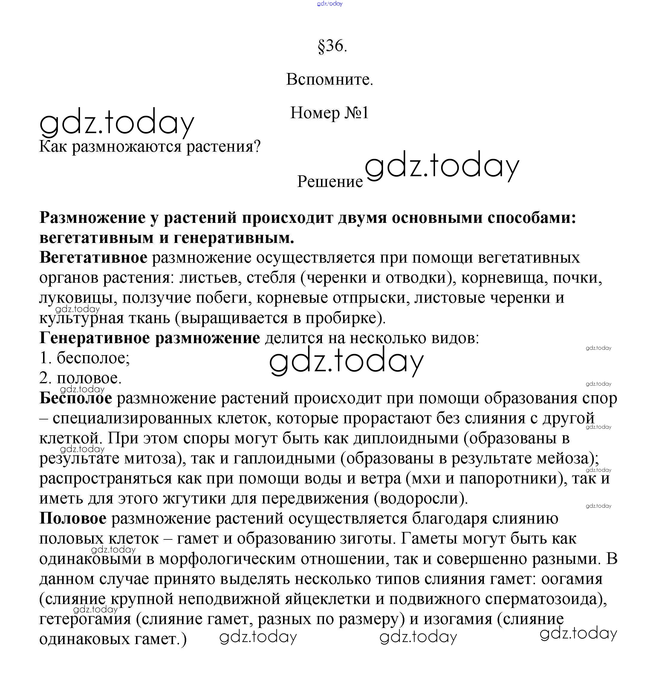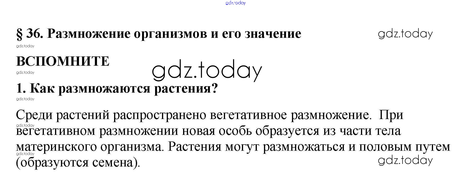 На страницах сайта gdz.today вы найдете учебный и вспомогательный материал, направленный на улучшения знаний школьной программы. ГДЗ - онлайн мир знаний Вспомните Решение к §36 1 Учебнику по Биологии для 5-6 класса Пасечник, Суматохин Просвещение Линия жизни 2020