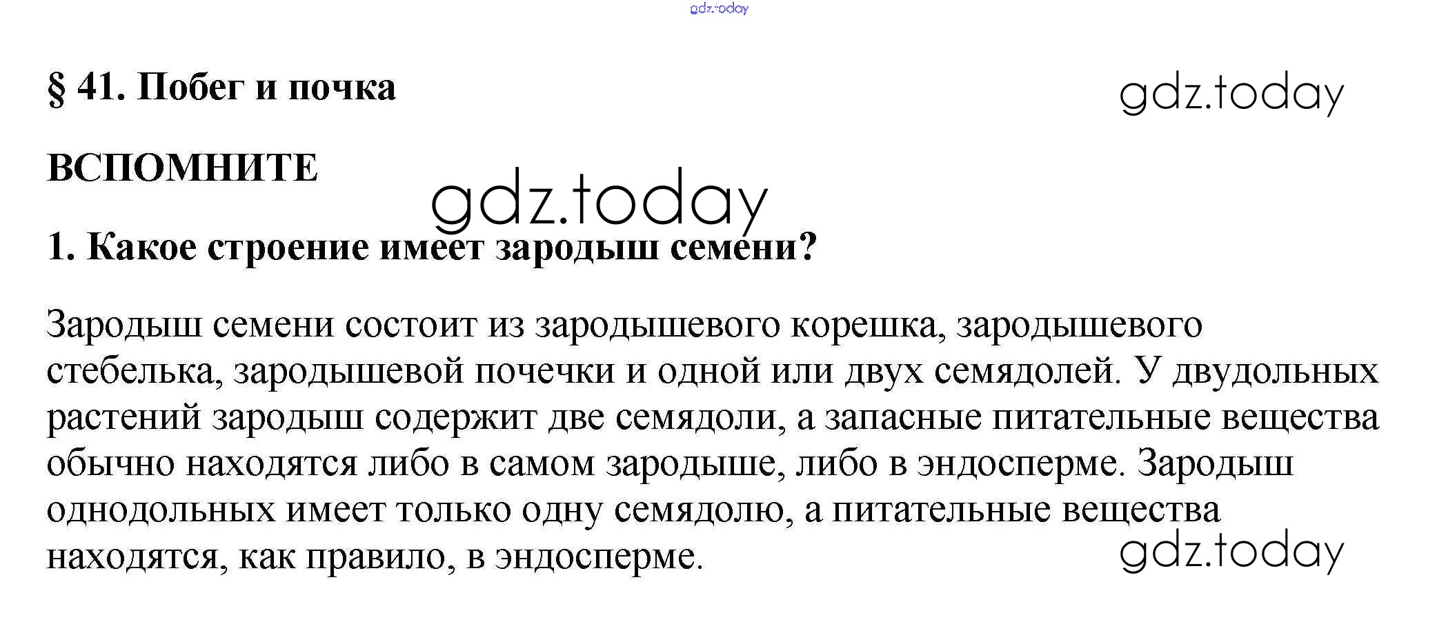 На страницах сайта gdz.today вы найдете учебный и вспомогательный материал, направленный на улучшения знаний школьной программы. ГДЗ - онлайн мир знаний Вспомните Решение к §41 1 Учебнику по Биологии для 5-6 класса Пасечник, Суматохин Просвещение Линия жизни 2020