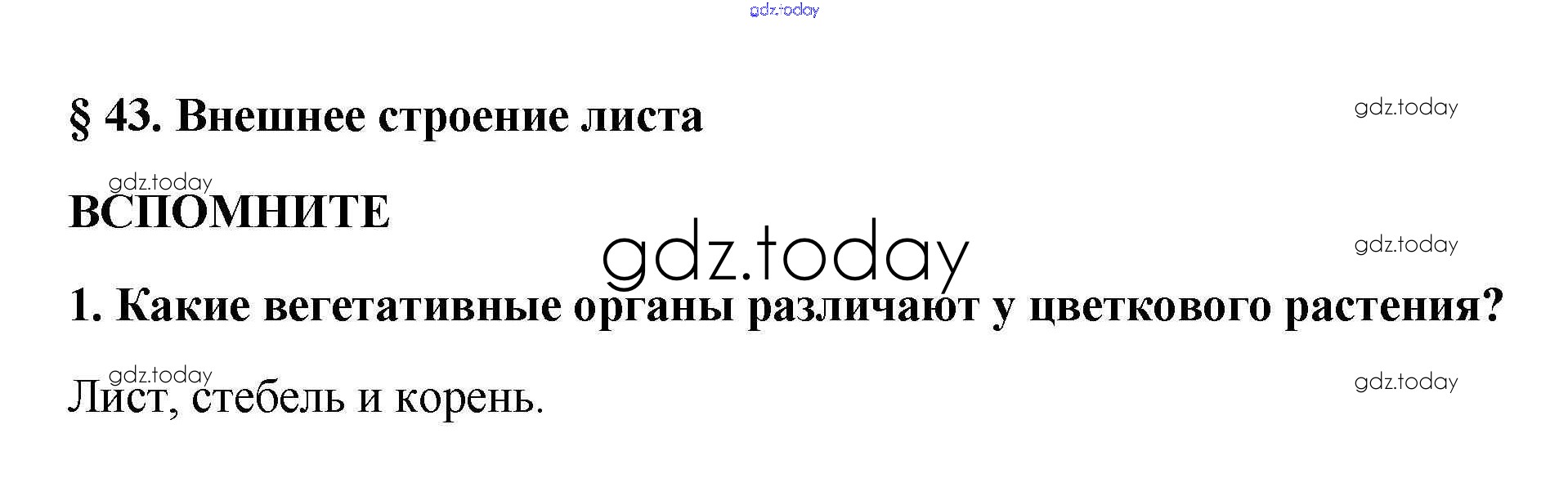 На страницах сайта gdz.today вы найдете учебный и вспомогательный материал, направленный на улучшения знаний школьной программы. ГДЗ - онлайн мир знаний Вспомните Решение к §43 1 Учебнику по Биологии для 5-6 класса Пасечник, Суматохин Просвещение Линия жизни 2020