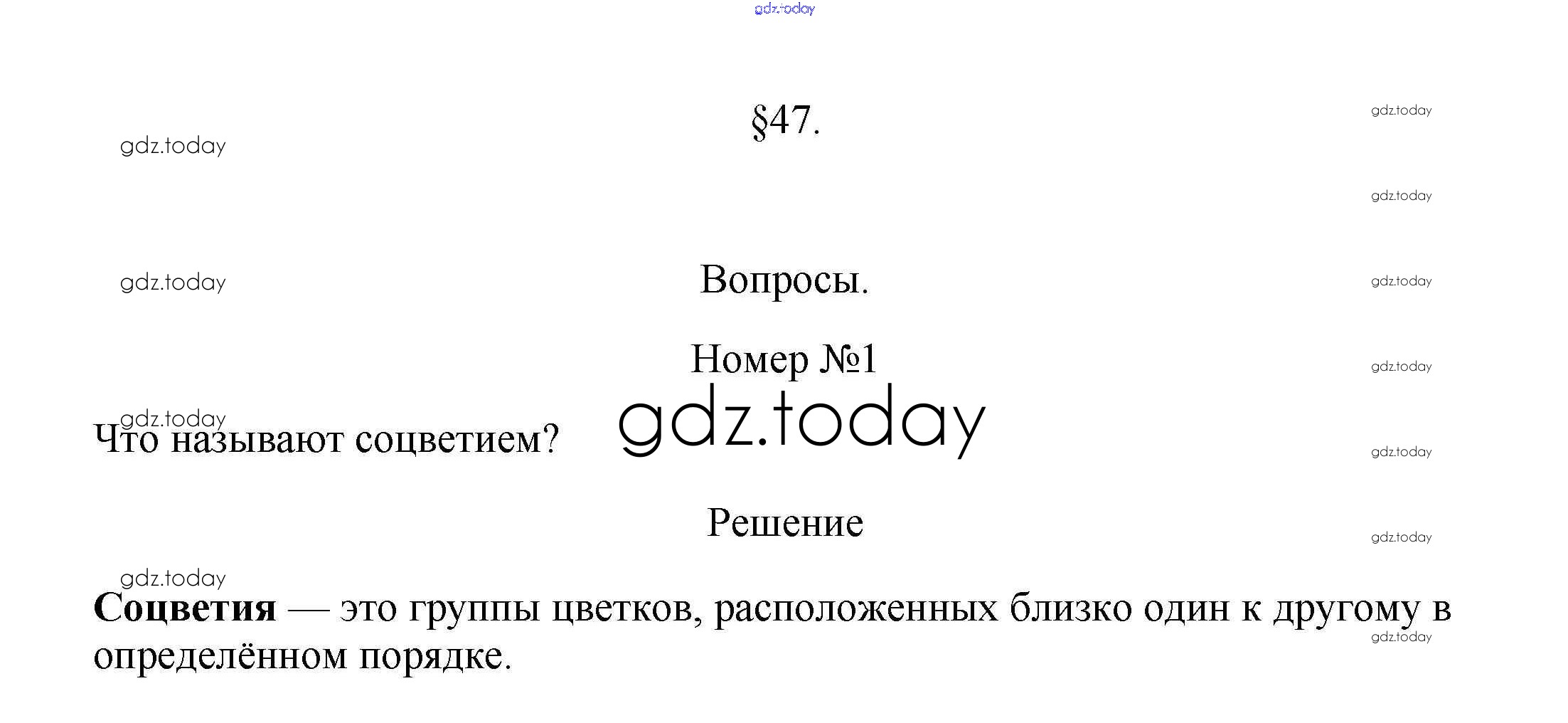 На страницах сайта gdz.today вы найдете учебный и вспомогательный материал, направленный на улучшения знаний школьной программы. ГДЗ - онлайн мир знаний Вопросы Решение к §47 1 Учебнику по Биологии для 5-6 класса Пасечник, Суматохин Просвещение Линия жизни 2020