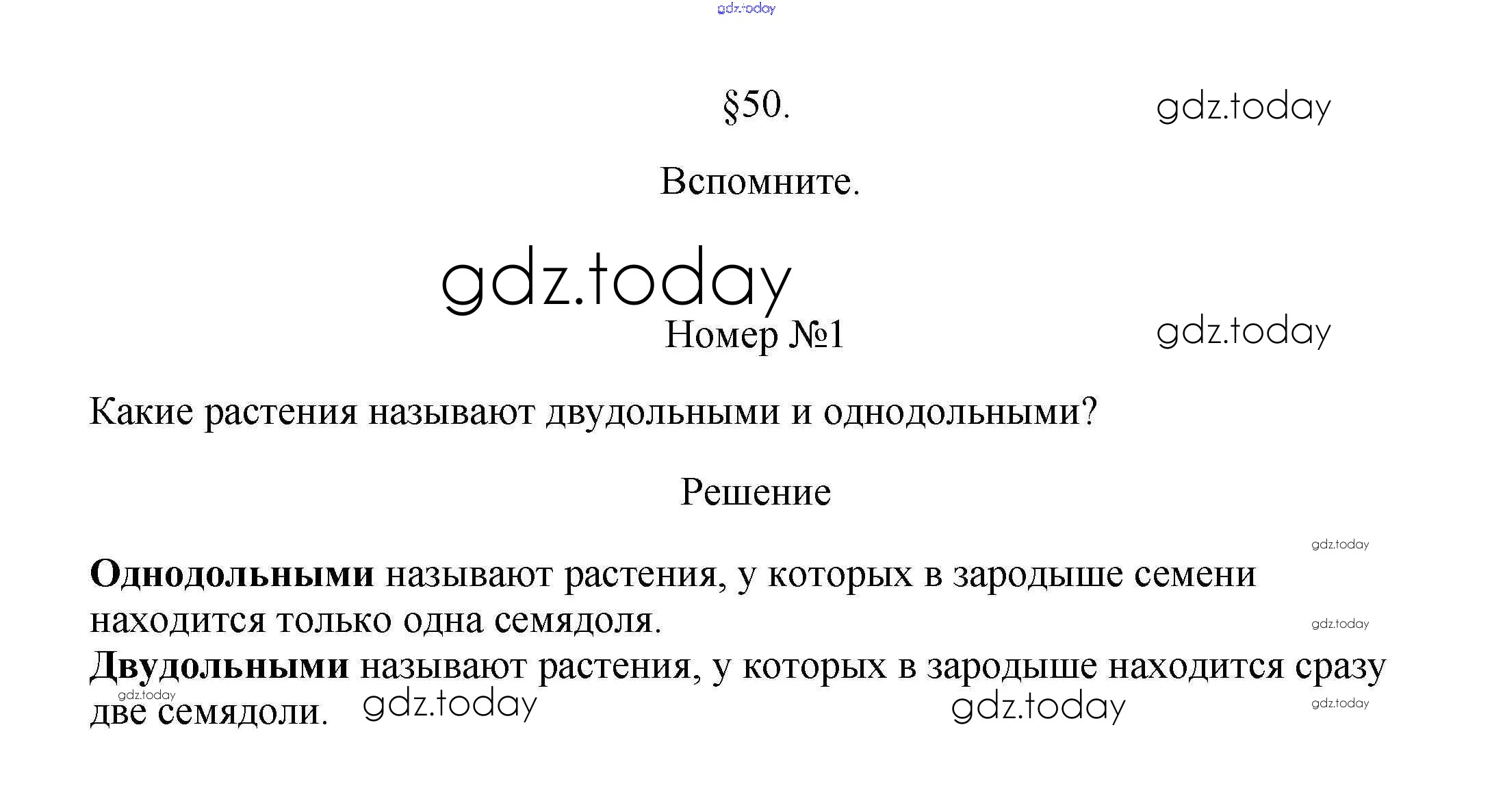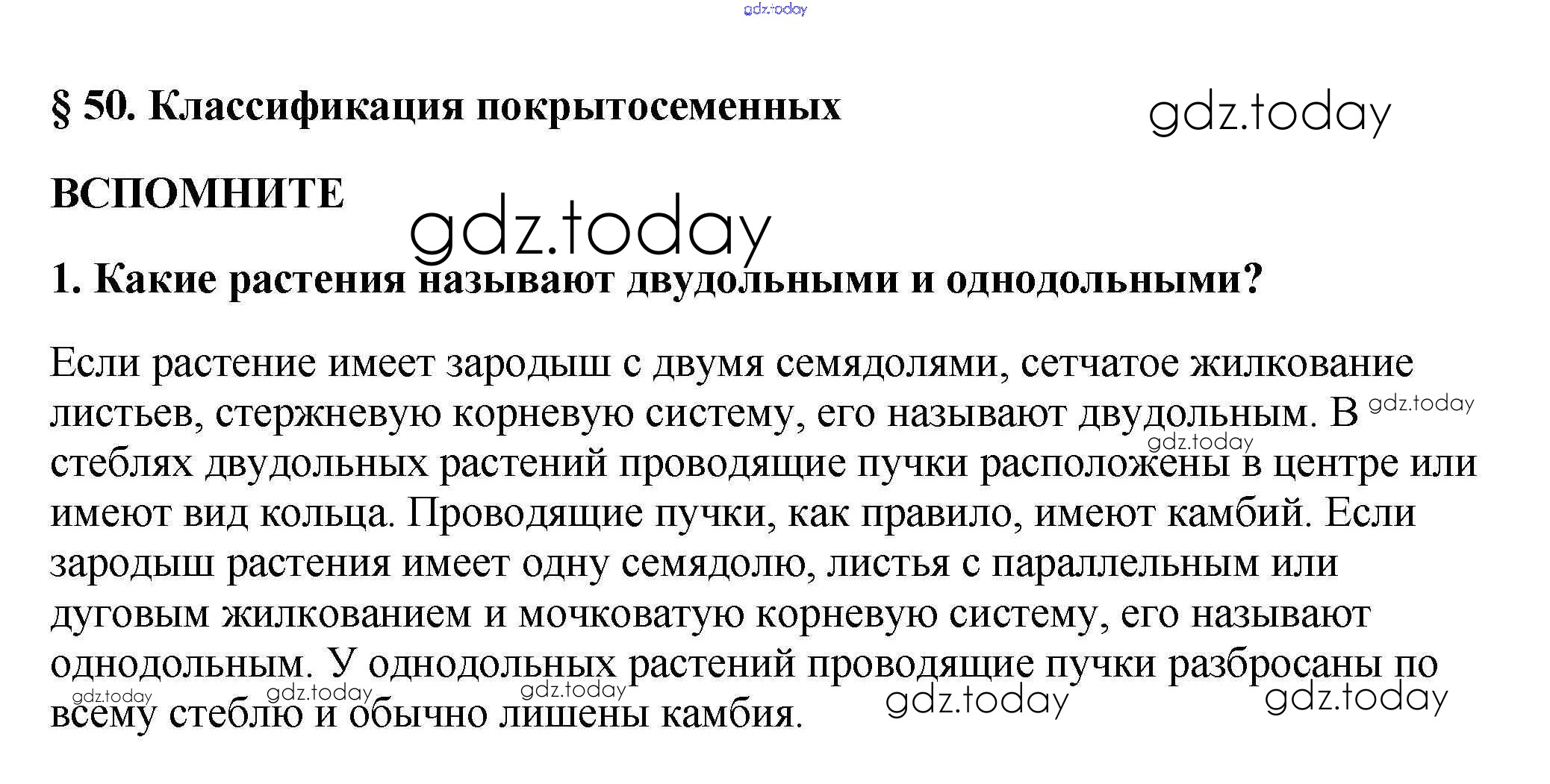 На страницах сайта gdz.today вы найдете учебный и вспомогательный материал, направленный на улучшения знаний школьной программы. ГДЗ - онлайн мир знаний Вспомните Решение к §50 1 Учебнику по Биологии для 5-6 класса Пасечник, Суматохин Просвещение Линия жизни 2020