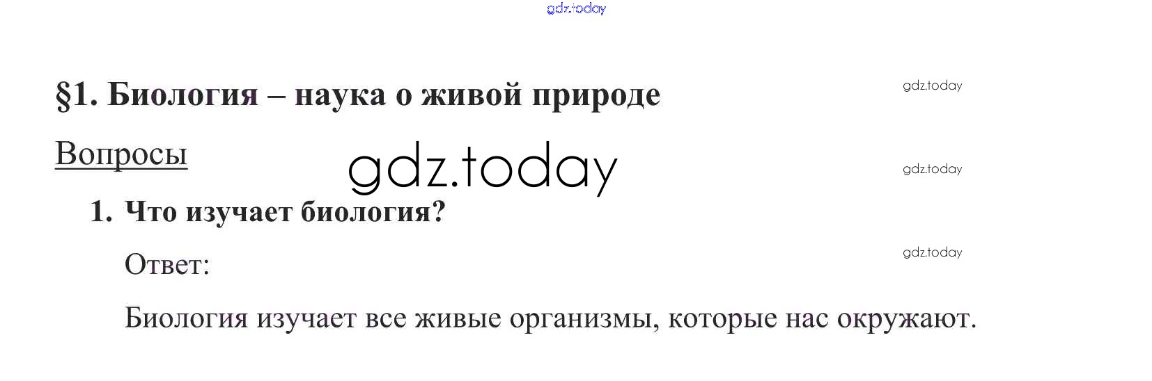 На страницах сайта gdz.today вы найдете учебный и вспомогательный материал, направленный на улучшения знаний школьной программы. ГДЗ - онлайн мир знаний Вопросы в конце параграфа Решение к §1 1 Учебнику по Биологии для 5 класса Пасечник Дрофа УМК 2016