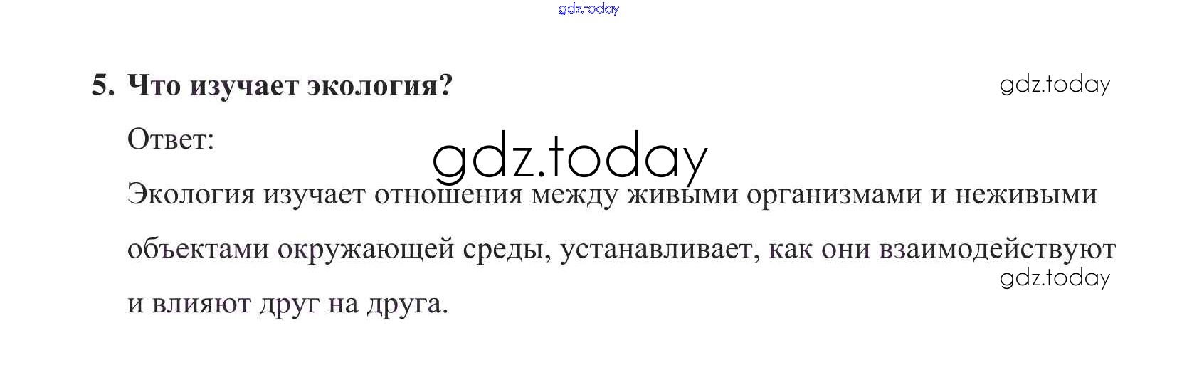На страницах сайта gdz.today вы найдете учебный и вспомогательный материал, направленный на улучшения знаний школьной программы. ГДЗ - онлайн мир знаний Вопросы в конце параграфа Решение к §1 5 Учебнику по Биологии для 5 класса Пасечник Дрофа УМК 2016