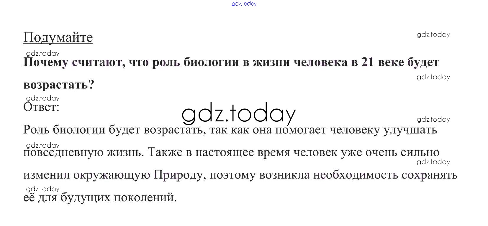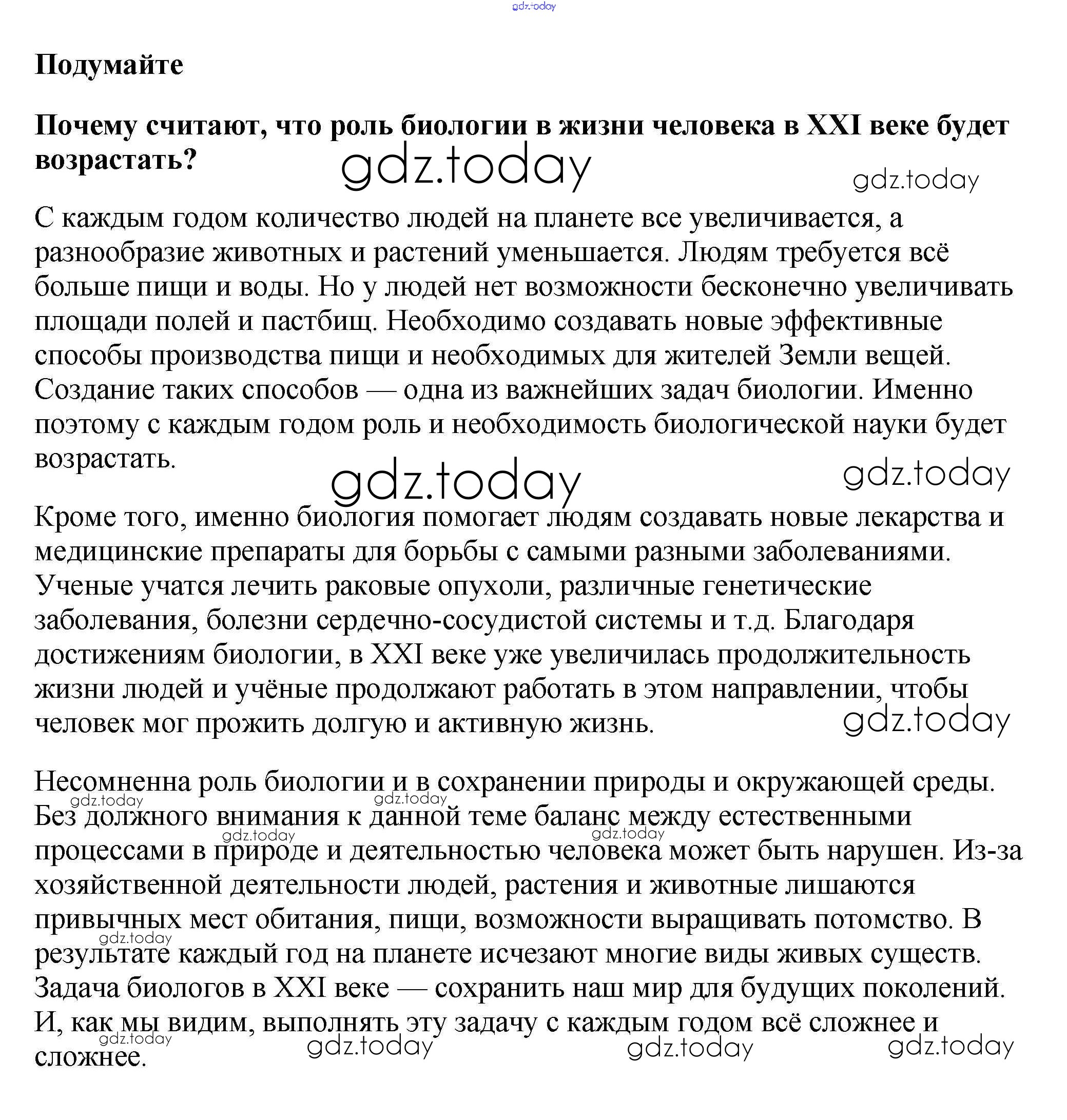 На страницах сайта gdz.today вы найдете учебный и вспомогательный материал, направленный на улучшения знаний школьной программы. ГДЗ - онлайн мир знаний Подумайте Решение к §1 1 Учебнику по Биологии для 5 класса Пасечник Дрофа УМК 2016