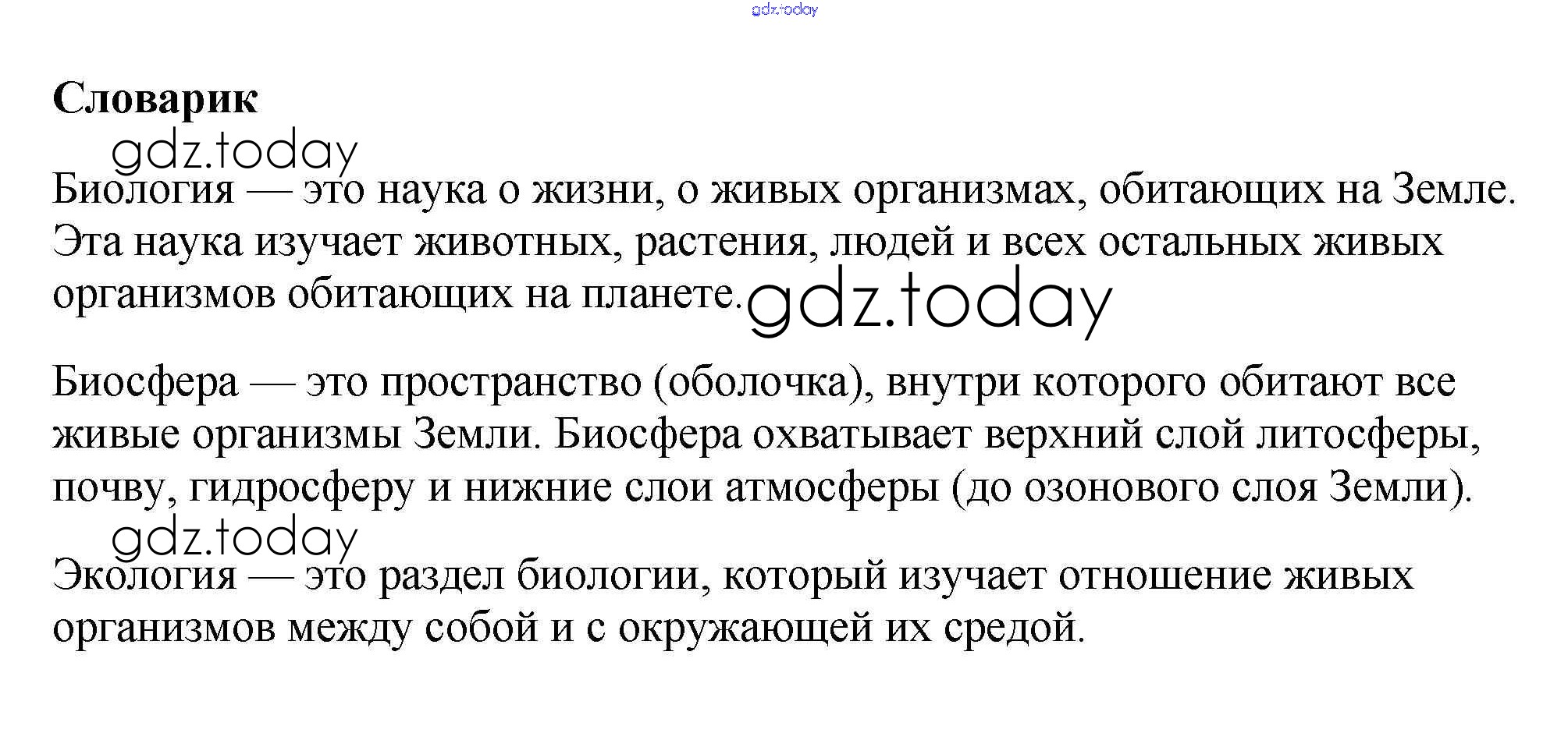 На страницах сайта gdz.today вы найдете учебный и вспомогательный материал, направленный на улучшения знаний школьной программы. ГДЗ - онлайн мир знаний Словарик Решение к §1 1 Учебнику по Биологии для 5 класса Пасечник Дрофа УМК 2016